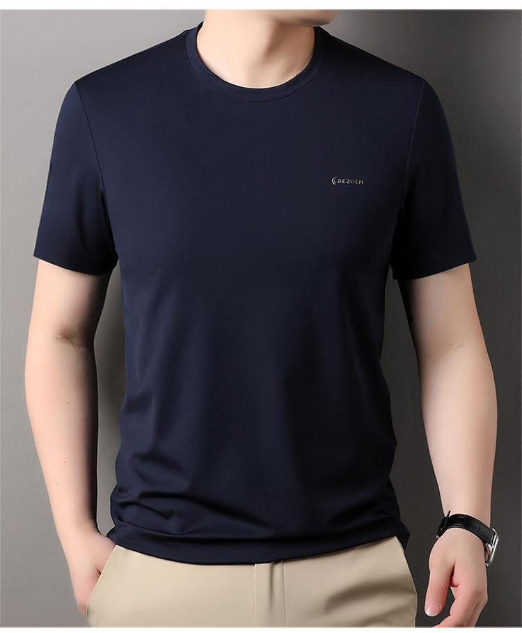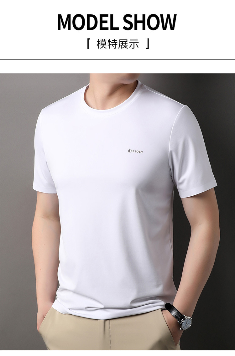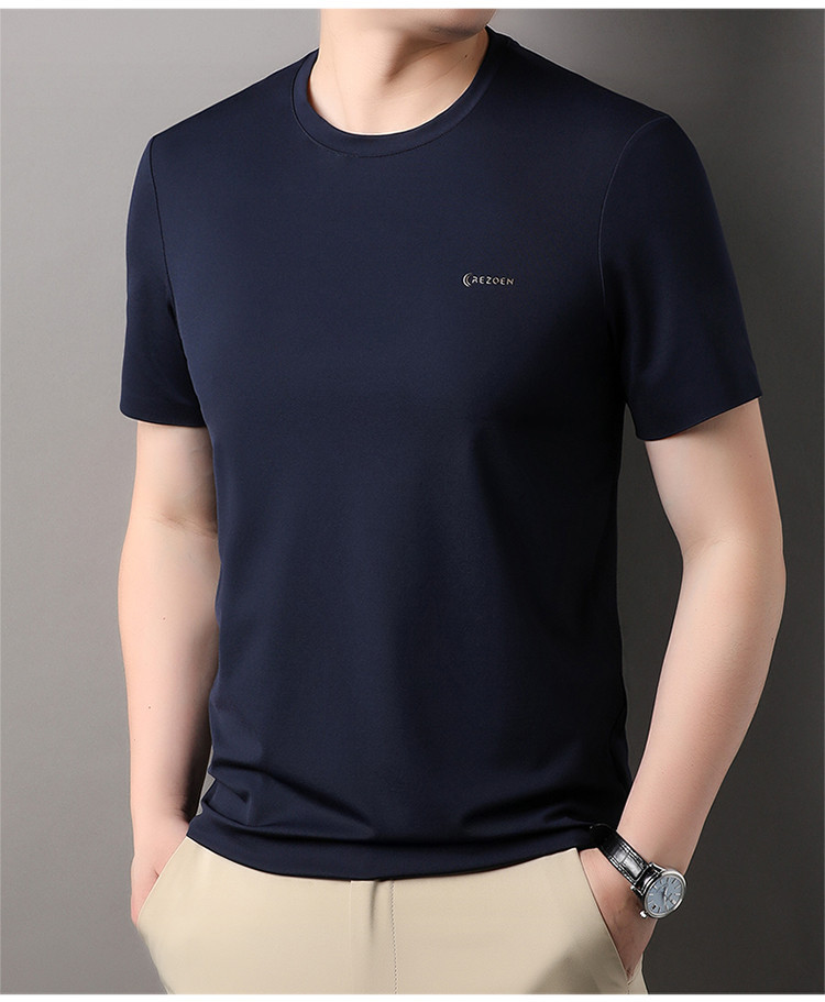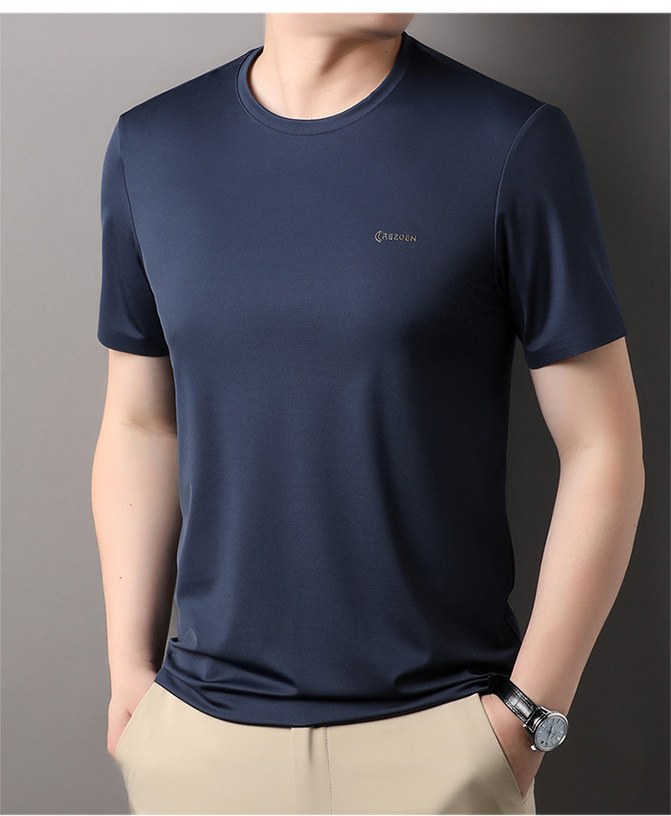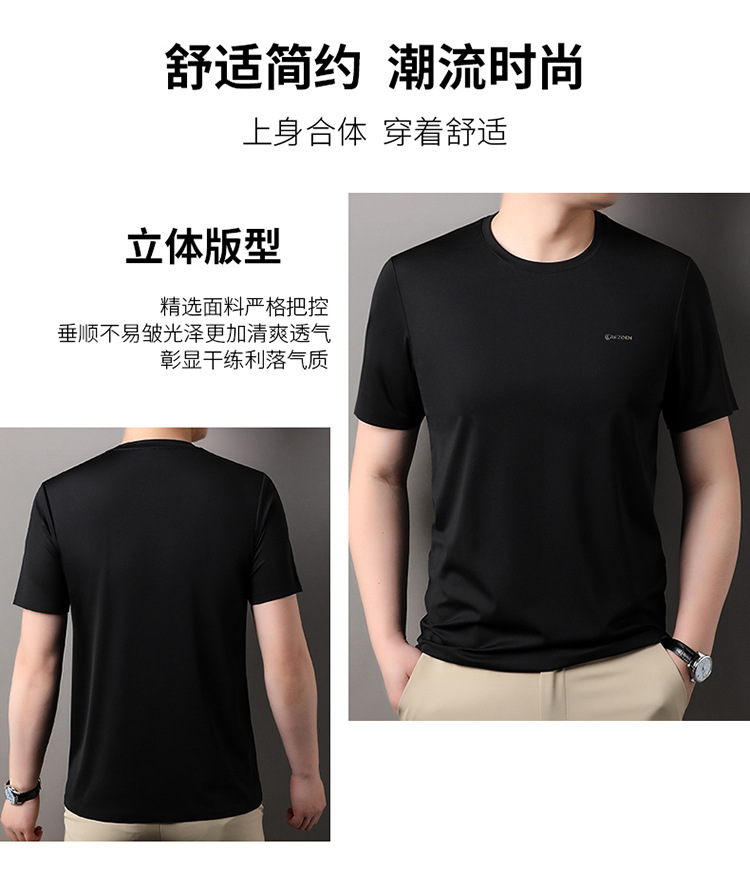 [멀베리 실크 + 큐프로 실크] 남성용 반팔 티셔츠 여름 루즈 라운드 넥 심리스 아이스 실크 시원한 통기성 셔츠스토어 가기