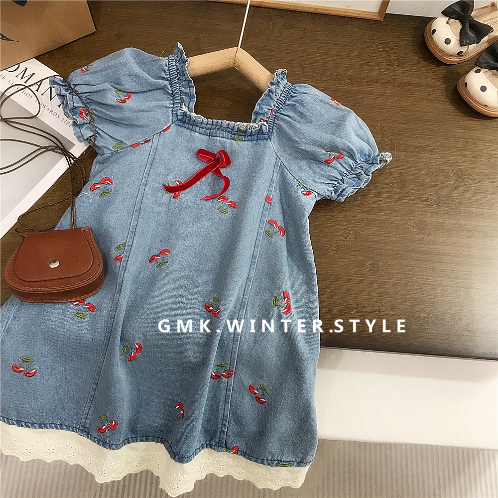 소녀 얇은 데님 원피스 달콤한 서양식 어린이 캐주얼 스커트 어린 소녀 아기 여름 새로운 대외 무역스토어 가기