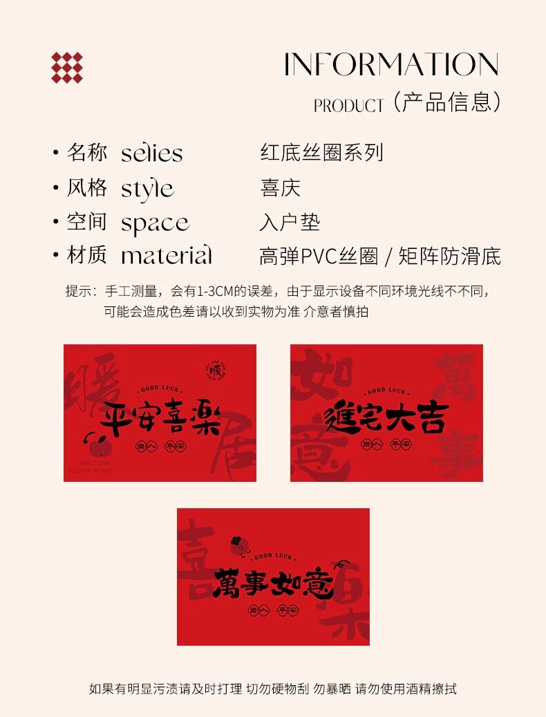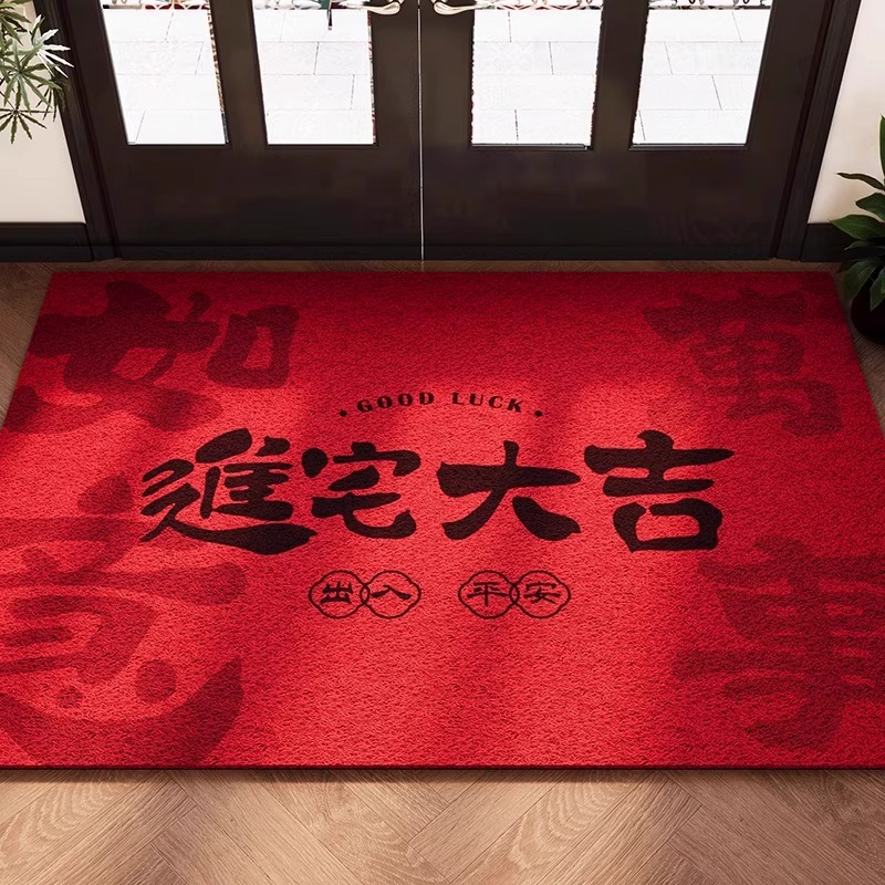 2025 신년 입구 문 바닥 매트 빨간색 와이어 링 입구 문 발 매트 현관 집 이사 축제 먼지 제거 카펫스토어 가기