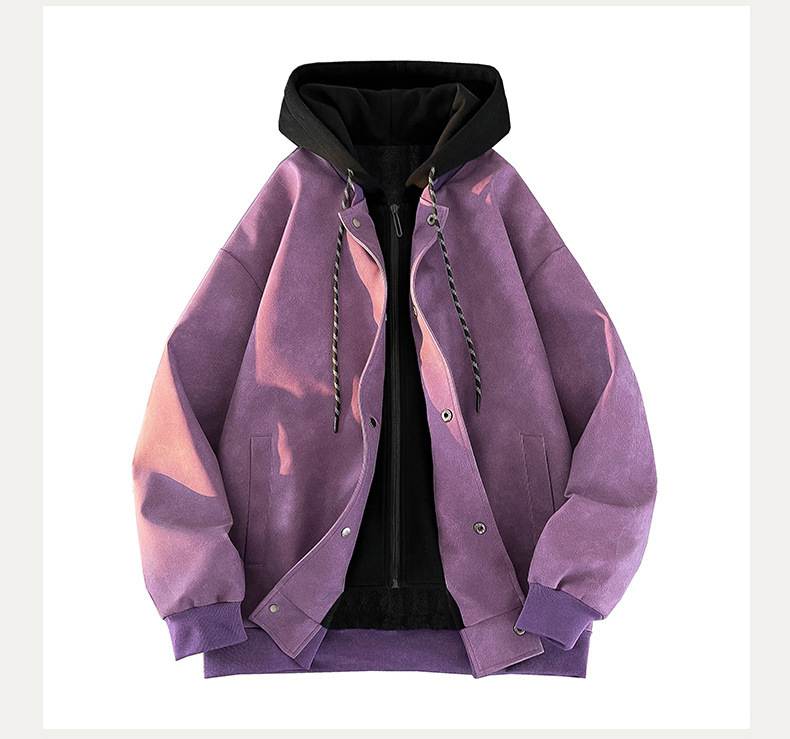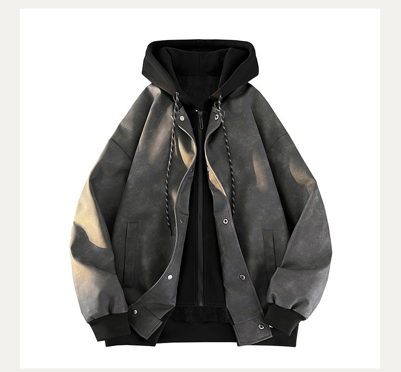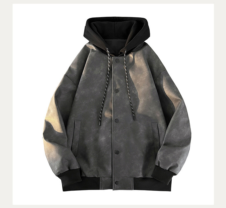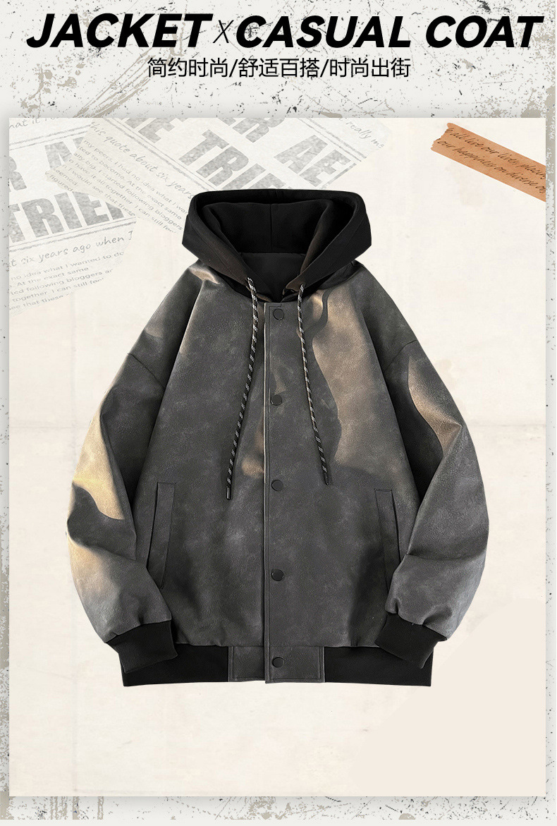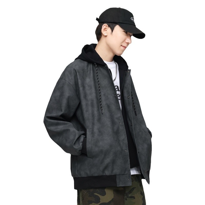 재킷 남성 봄과 가을 새로운 패션 브랜드 후드 남성 의류 홍콩 스타일 가짜 투피스 의류 느슨한 캐주얼 의류 남성 자켓