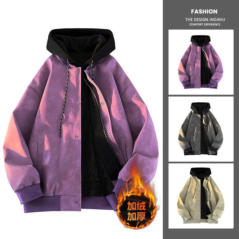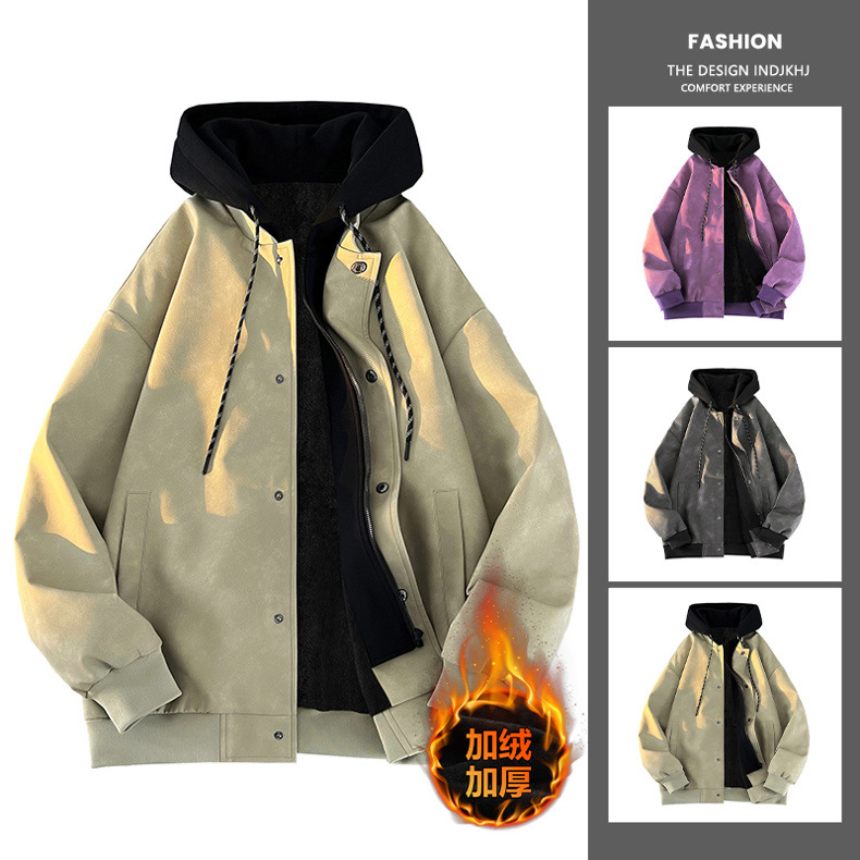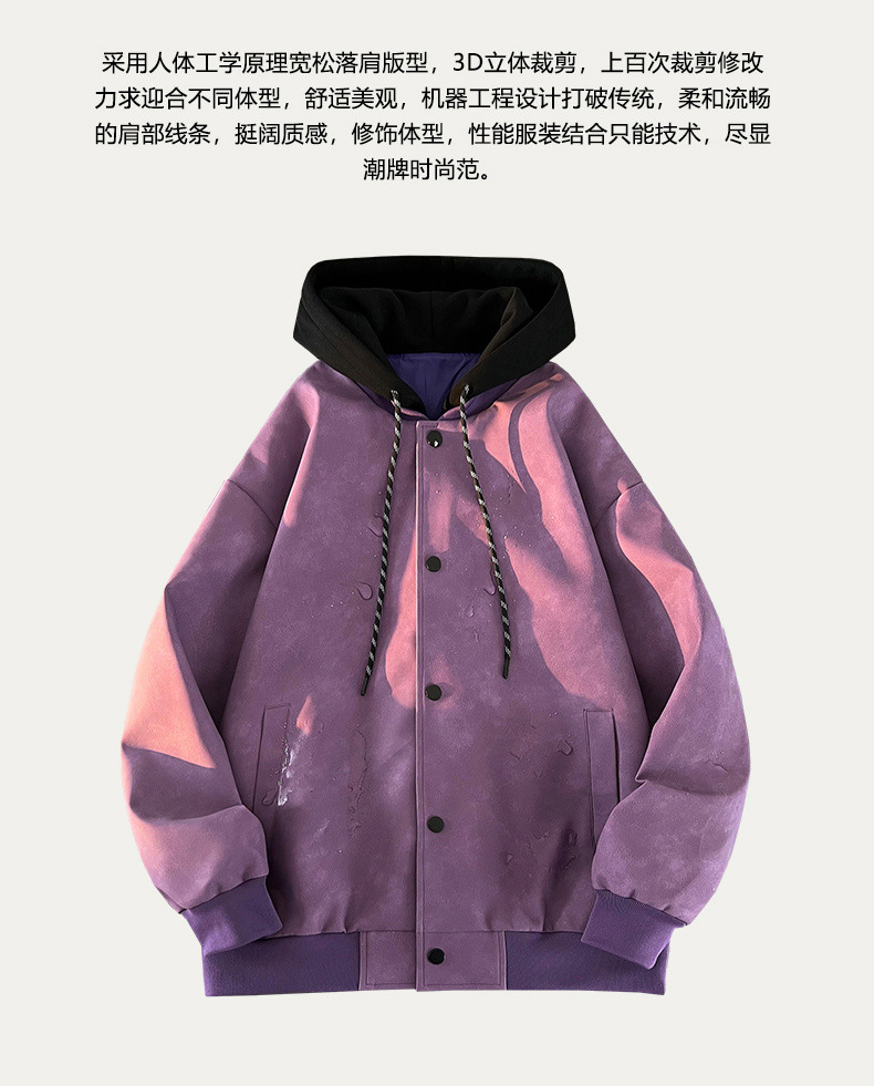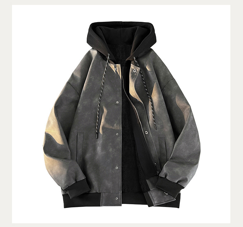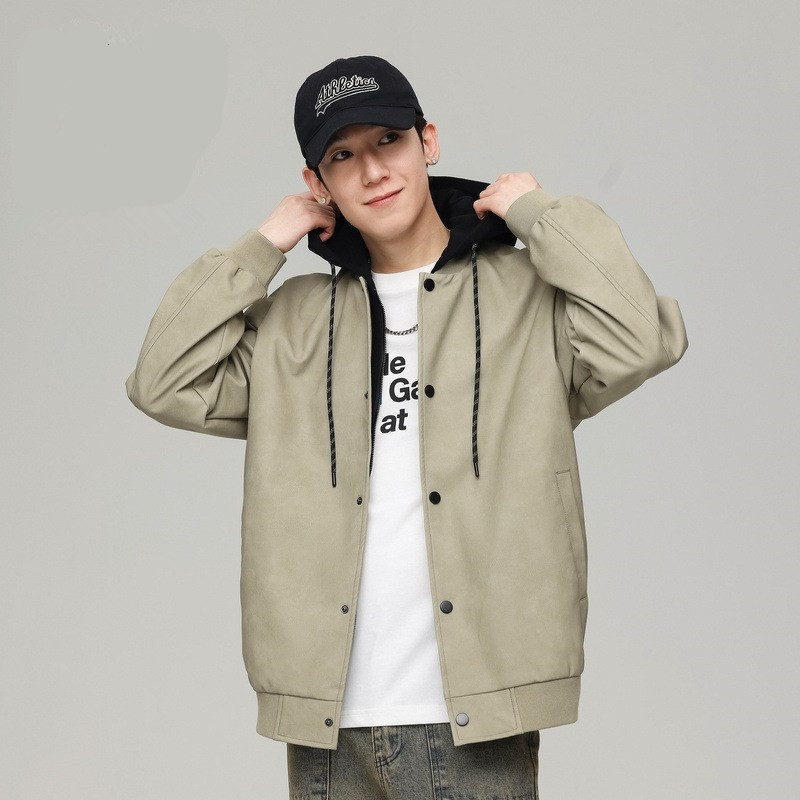 재킷 남성 봄과 가을 새로운 패션 브랜드 후드 남성 의류 홍콩 스타일 가짜 투피스 의류 느슨한 캐주얼 의류 남성 자켓