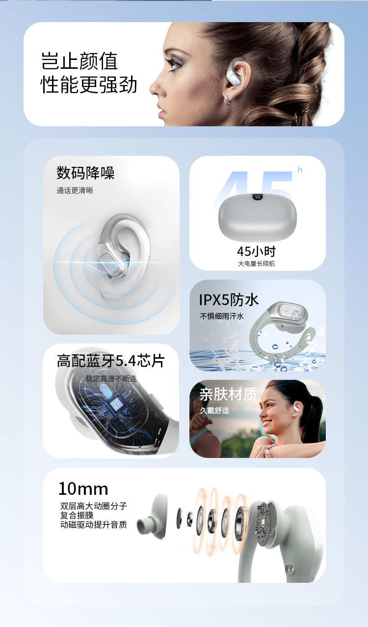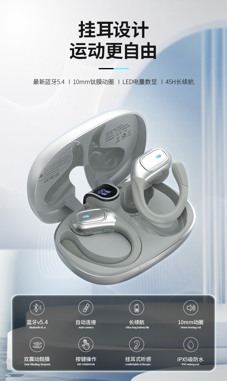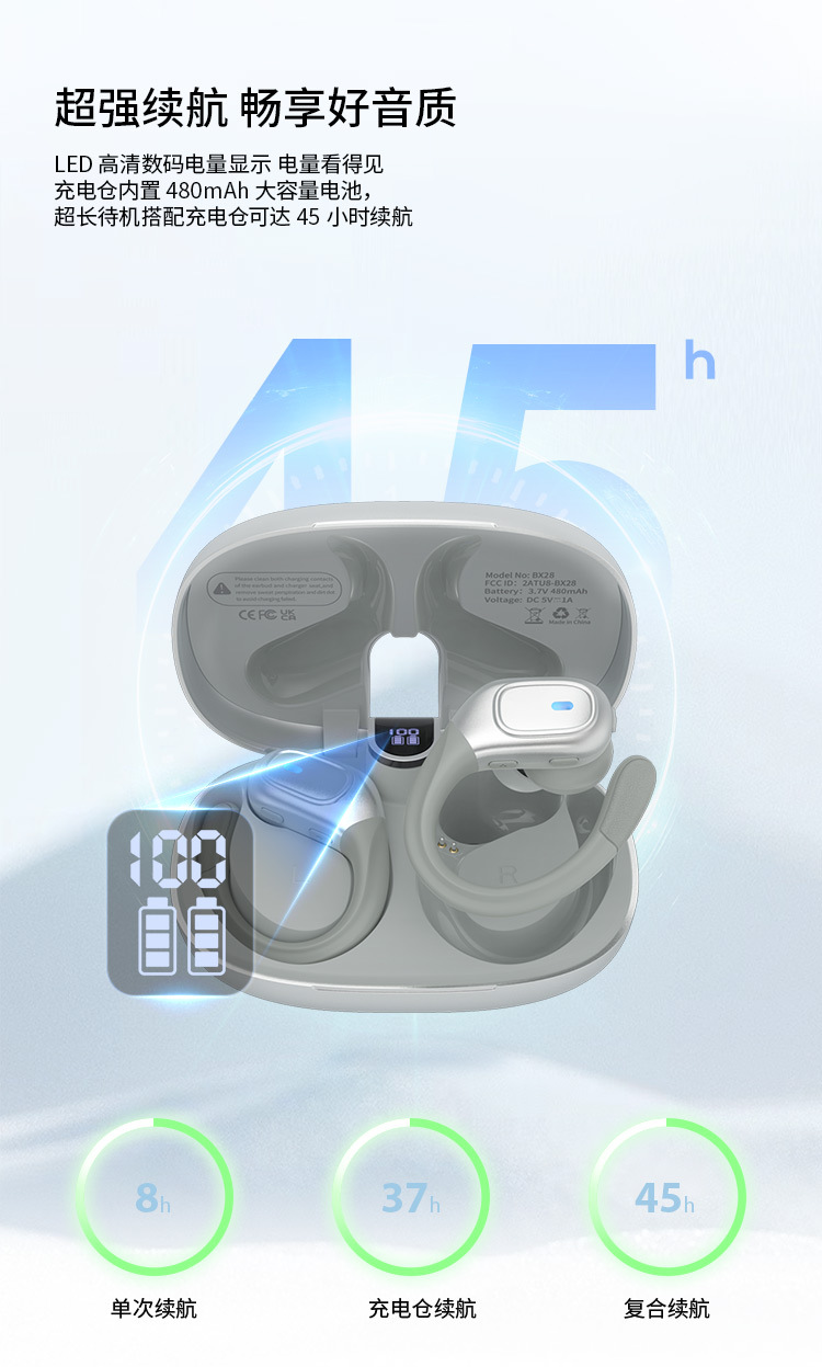 새로운 음향 기술 소음 감소 더블 마크 매달려 귀 무선 긴 내구성 헤드셋 스포츠 땀 방지 피트니스 블루투스 헤드셋