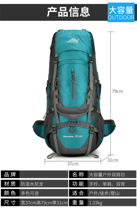 대용량 등산 가방 남성용 야외 배낭 다기능 여행 경량 발수 하이킹 스포츠 배낭