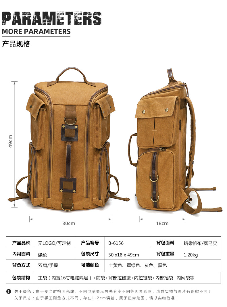 캔버스 배낭 야외 대용량 방수 여행 남성 스쿨백 틈새 디자인 배낭 여행 가방 컴퓨터 가방스토어 가기
