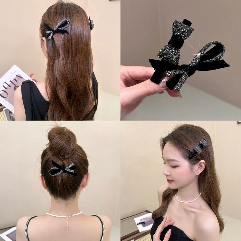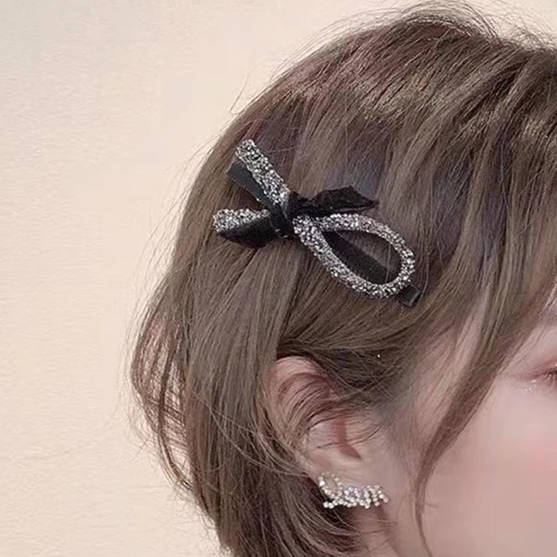 여성용 Xiaoxiangfeng 모조 다이아몬드 리본 머리핀, 고급 앞머리 사이드 클립, 달콤하고 시원한 핫 소녀 머리핀, 덕빌 클립 머리 장식