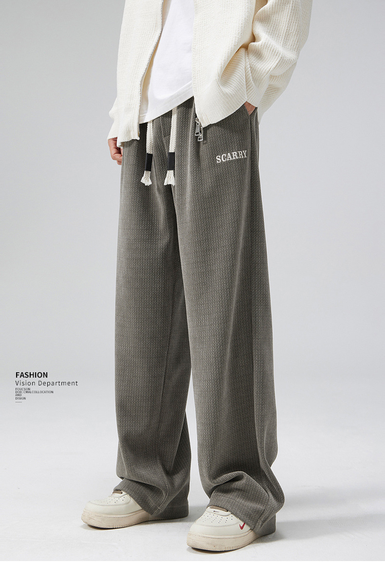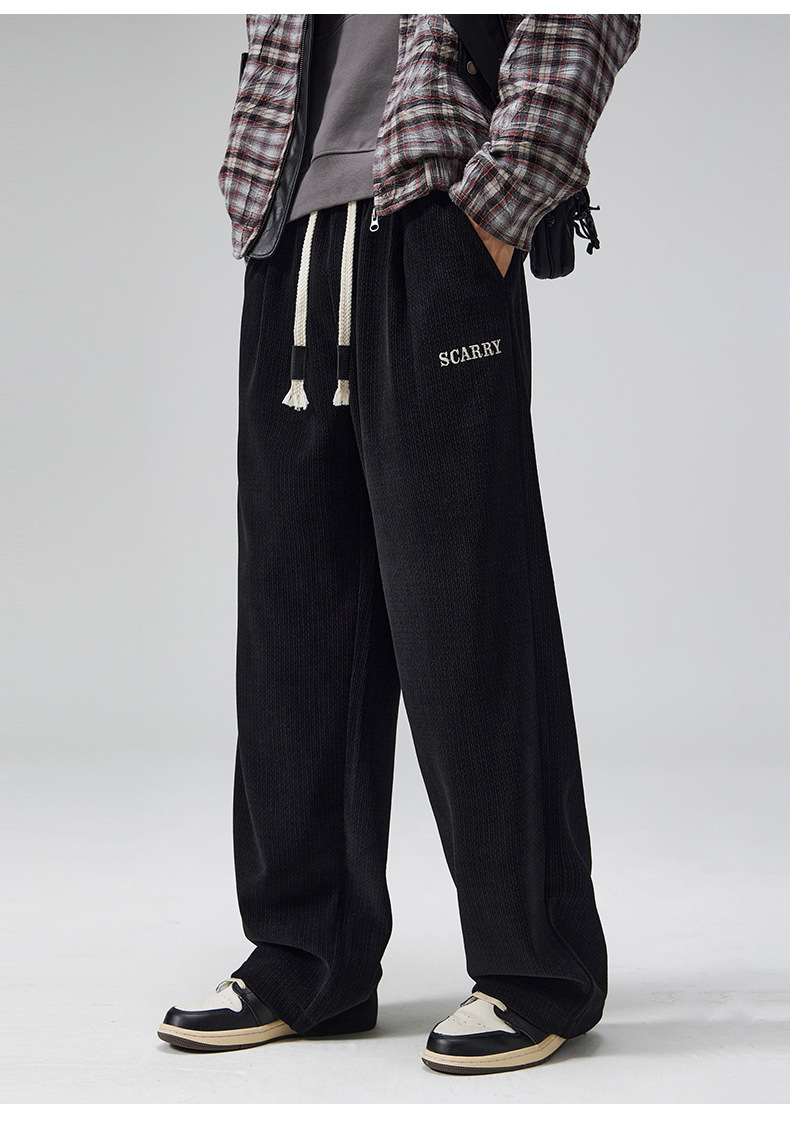 무거운 Chenille 스트레이트 캐주얼 바지 봄과 가을 패션 브랜드 바지 고급 루즈 올매치 와이드 레그 바지스토어 가기