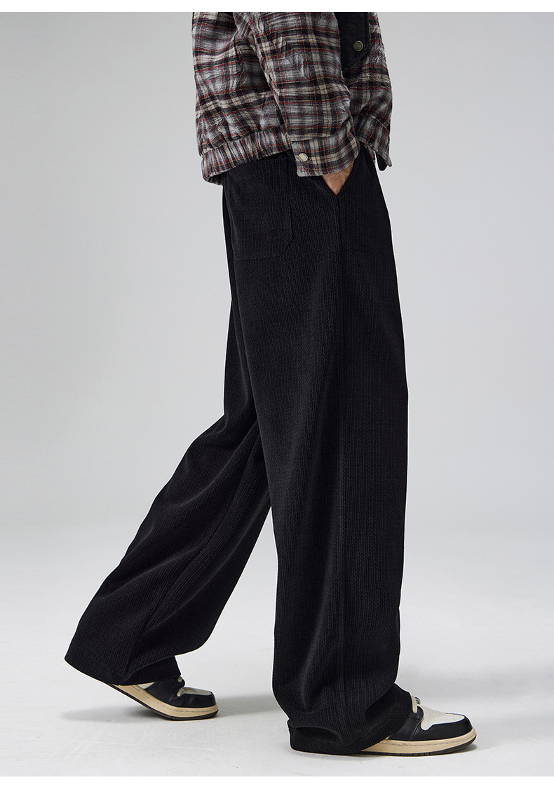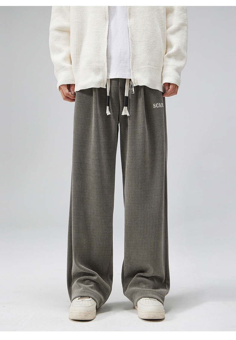 무거운 Chenille 스트레이트 캐주얼 바지 봄과 가을 패션 브랜드 바지 고급 루즈 올매치 와이드 레그 바지