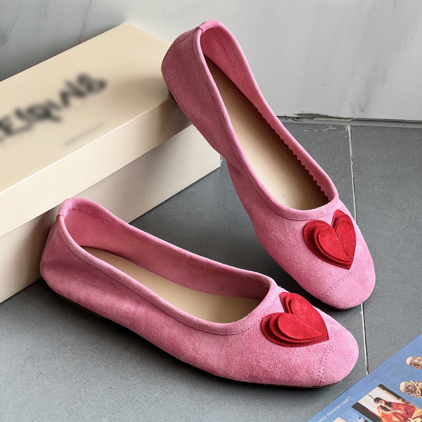 재고 있음 ~ 여성용 틈새 복고풍 프렌치 슈즈 핑크 2025 여성용 새 플랫 슈즈 얕은 입 부드러운 밑창 발레 슈즈스토어 가기