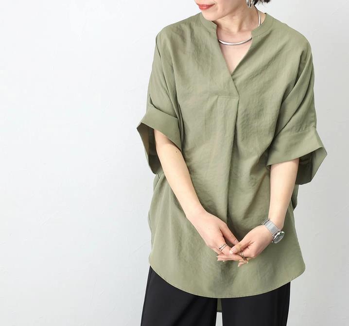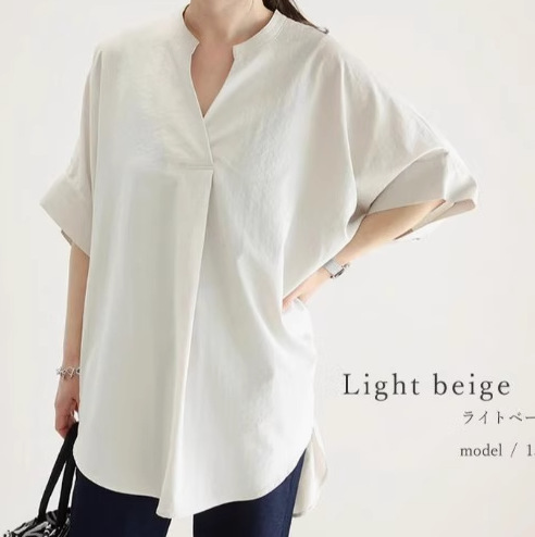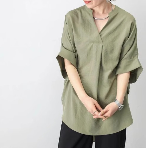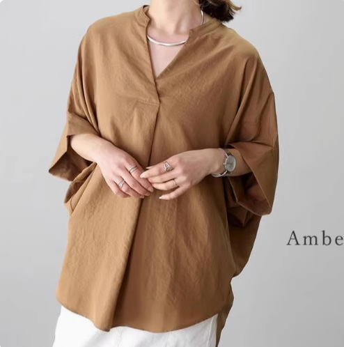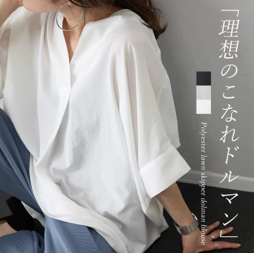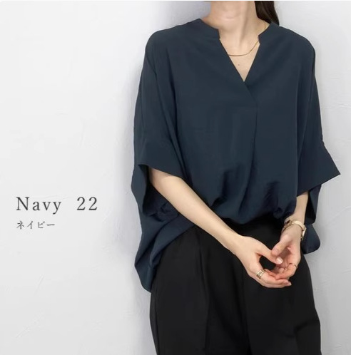 한국 스타일 여름 플러스 뚱뚱한 플러스 뚱뚱한 여자 솔리드 컬러 V 넥 느슨한 풀오버 박쥐 일곱 소매 셔츠 쉬폰 탑