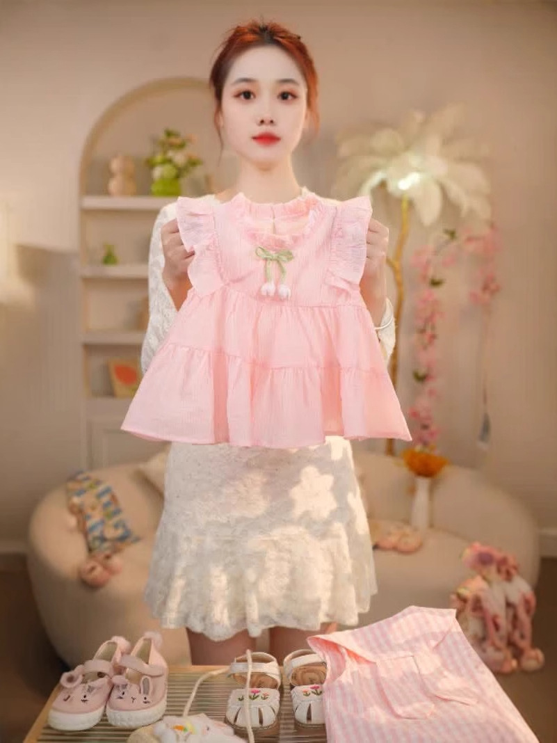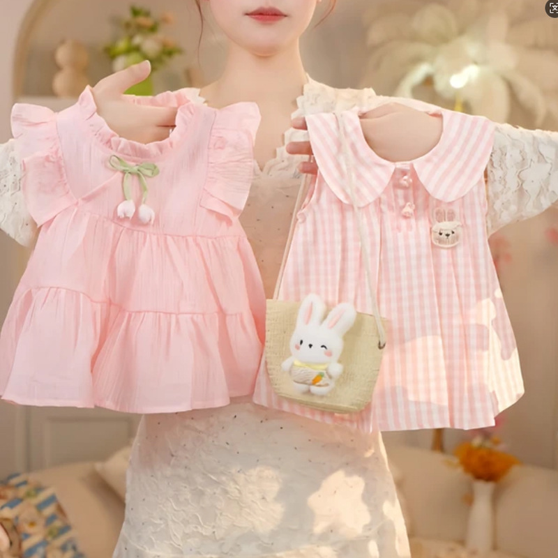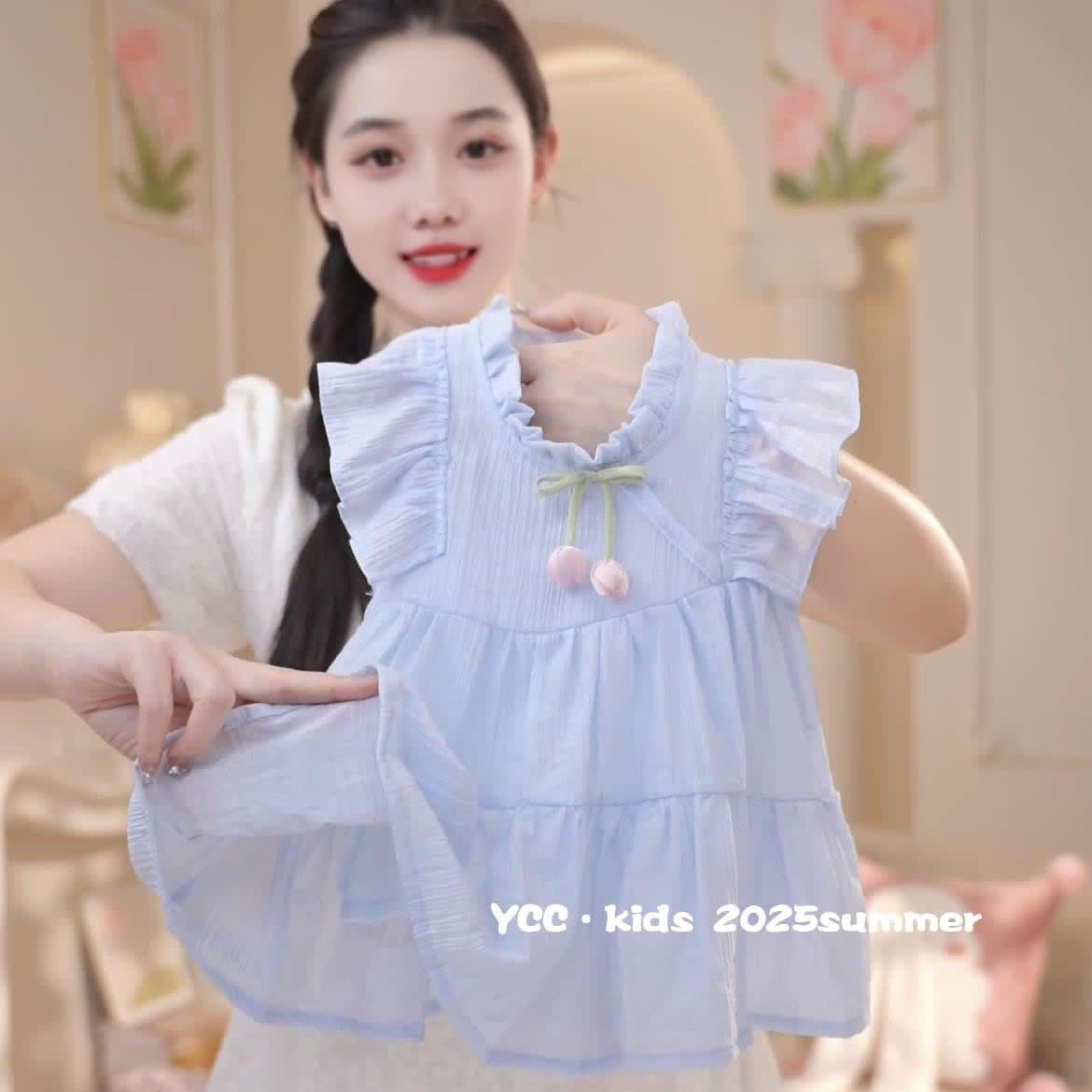 소녀 원피스 여름 2025 새로운 문체 느슨한 목회 달콤한 귀여운 공주 원피스 면 작은 비행 소매 원피스스토어 가기