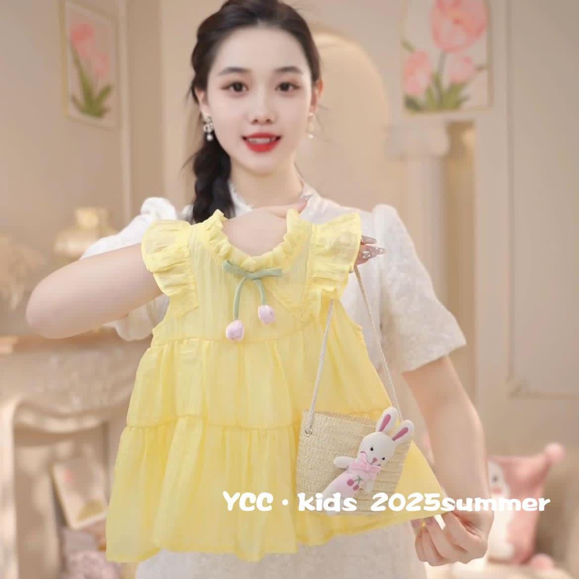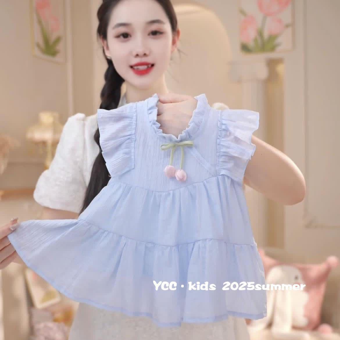 소녀 원피스 여름 2025 새로운 문체 느슨한 목회 달콤한 귀여운 공주 원피스 면 작은 비행 소매 원피스