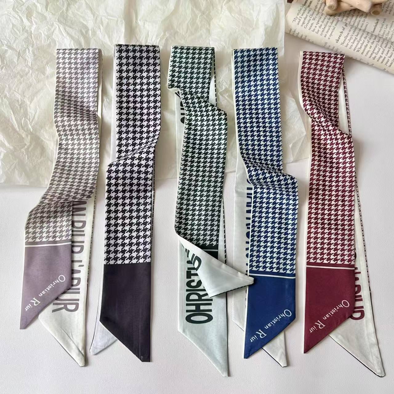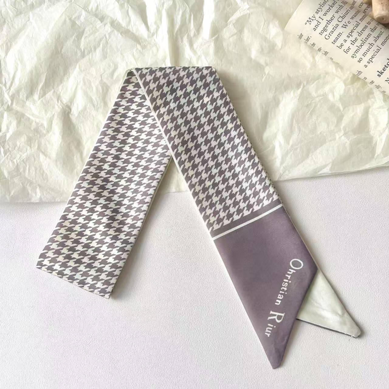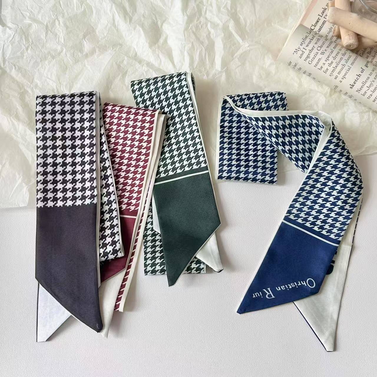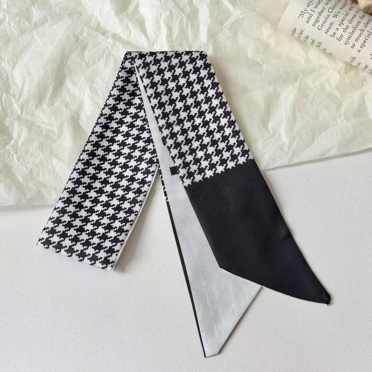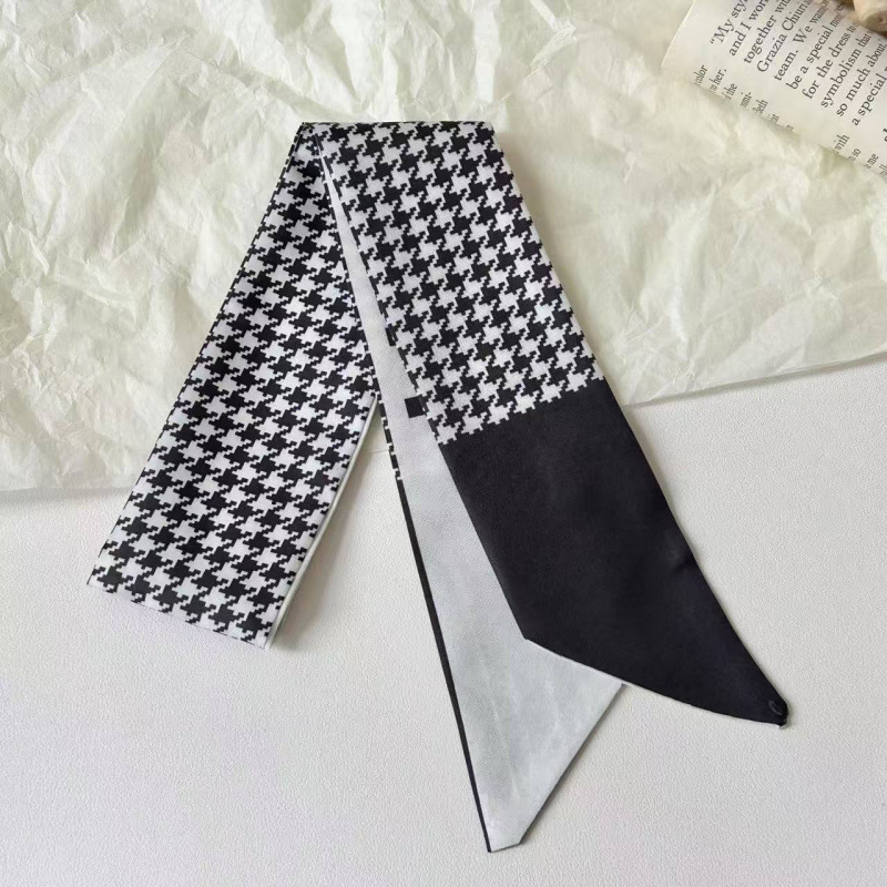 프렌치 레트로 Houndstooth 인쇄 작은 실크 스카프 높은 색상 가치 넥타이 가방 리본 장식 손목 스카프 벨트 액세서리