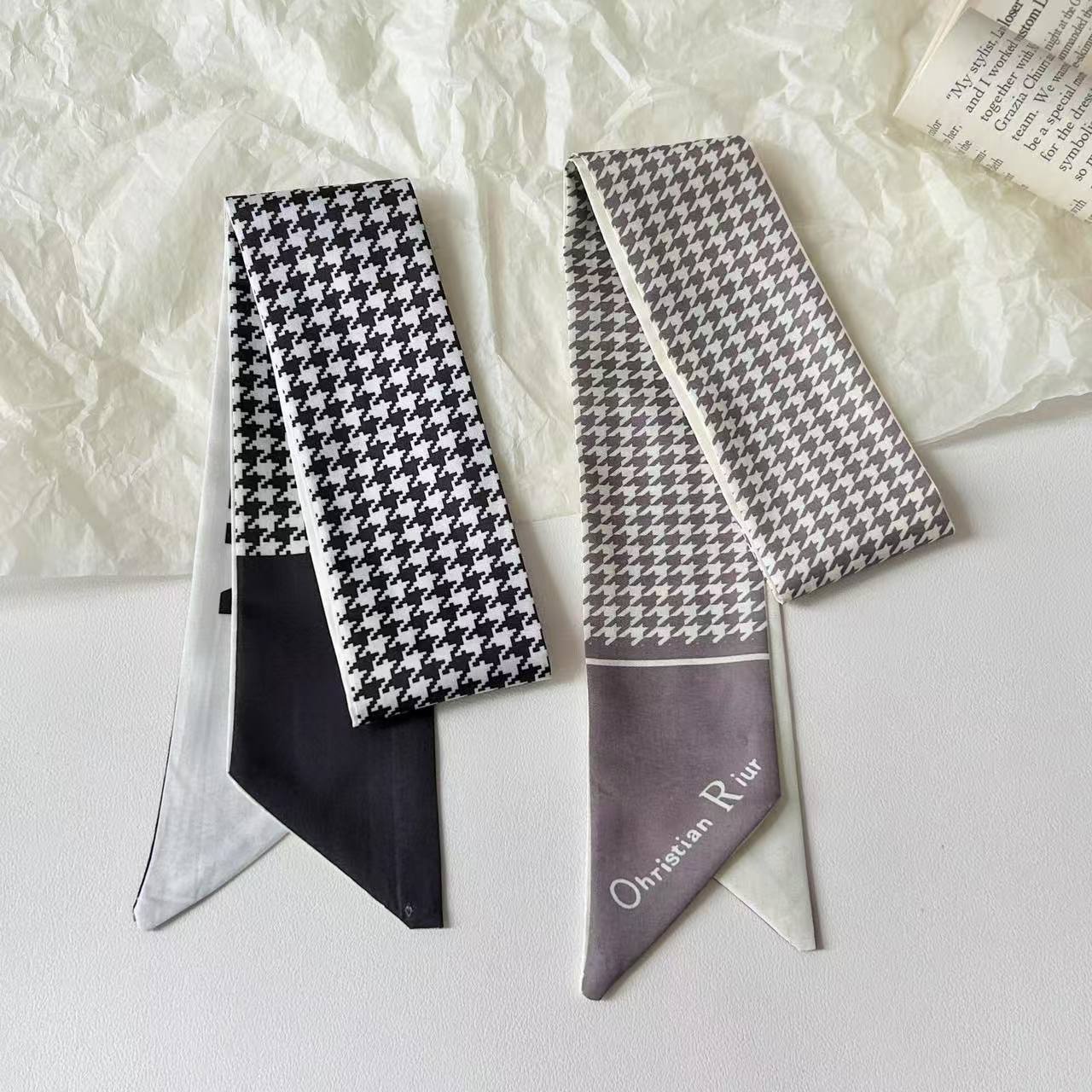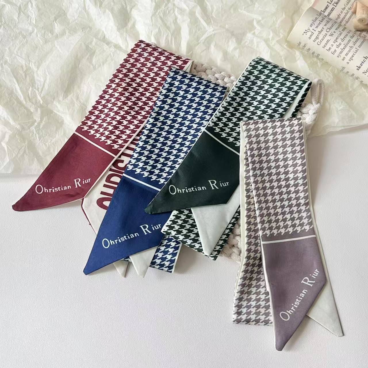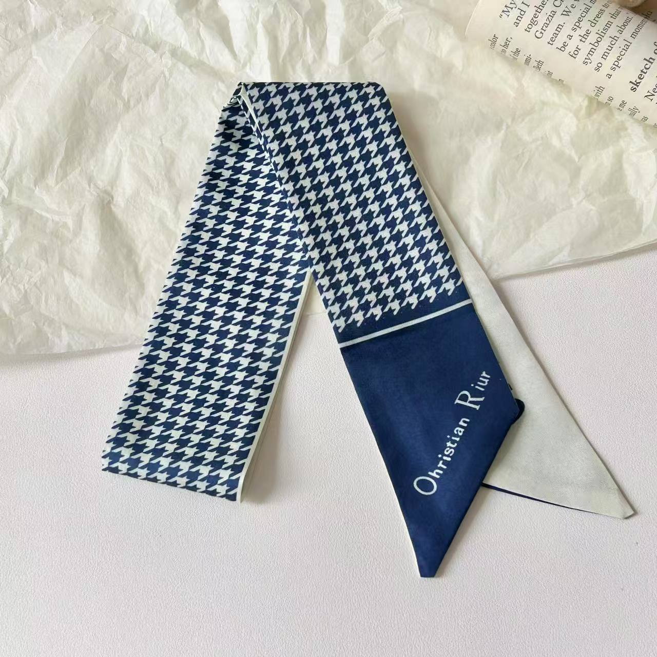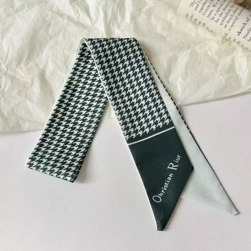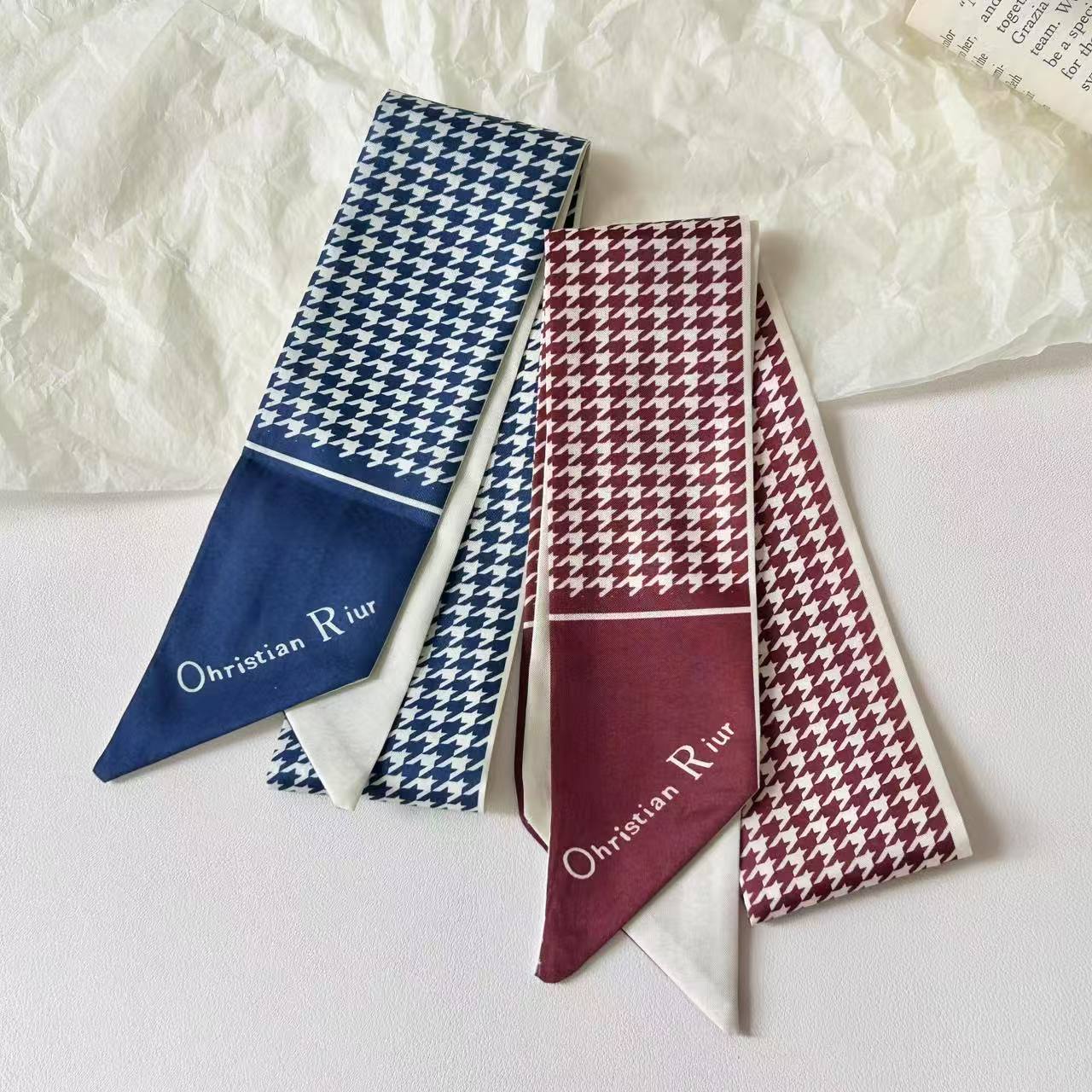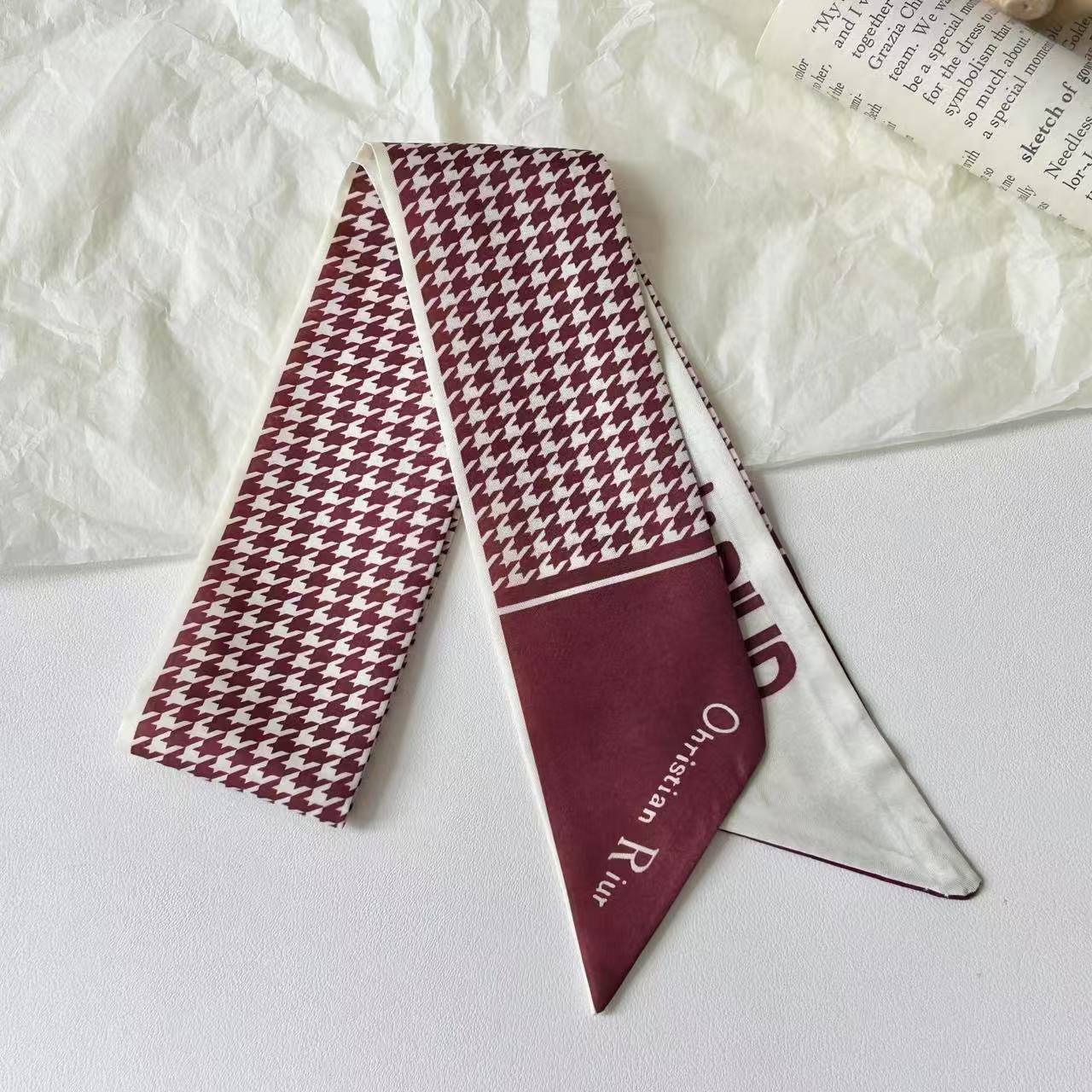 프렌치 레트로 Houndstooth 인쇄 작은 실크 스카프 높은 색상 가치 넥타이 가방 리본 장식 손목 스카프 벨트 액세서리