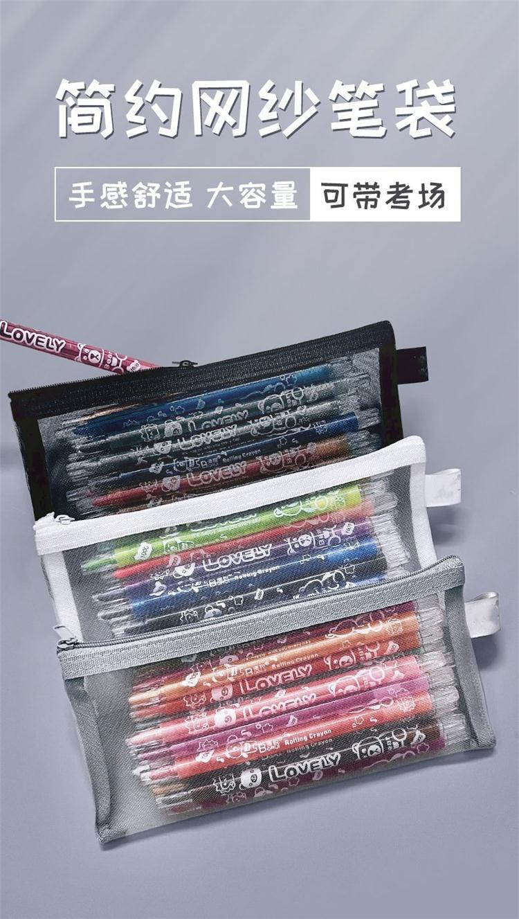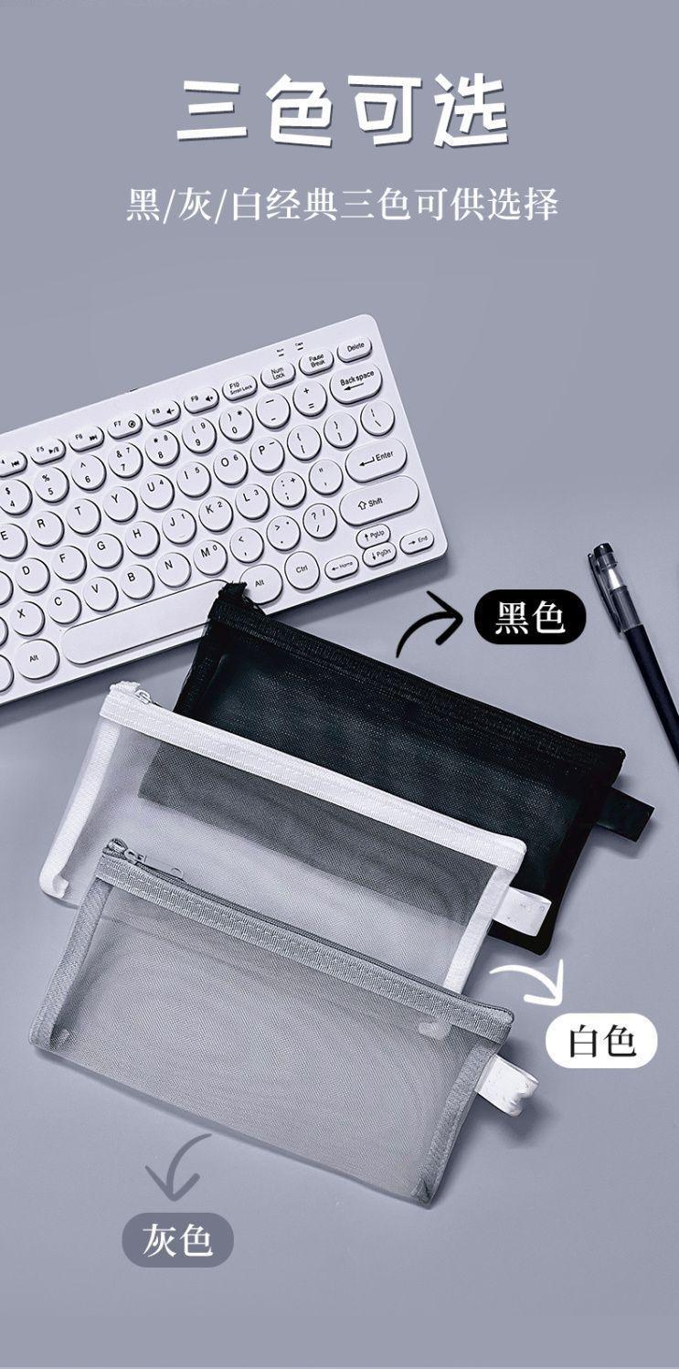 한국식 심플 대용량 투명 연필 가방 메쉬 나일론 고가치 연필 가방 문구 가방 귀여운 어린이 문구