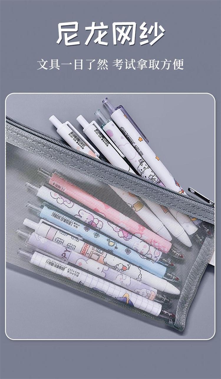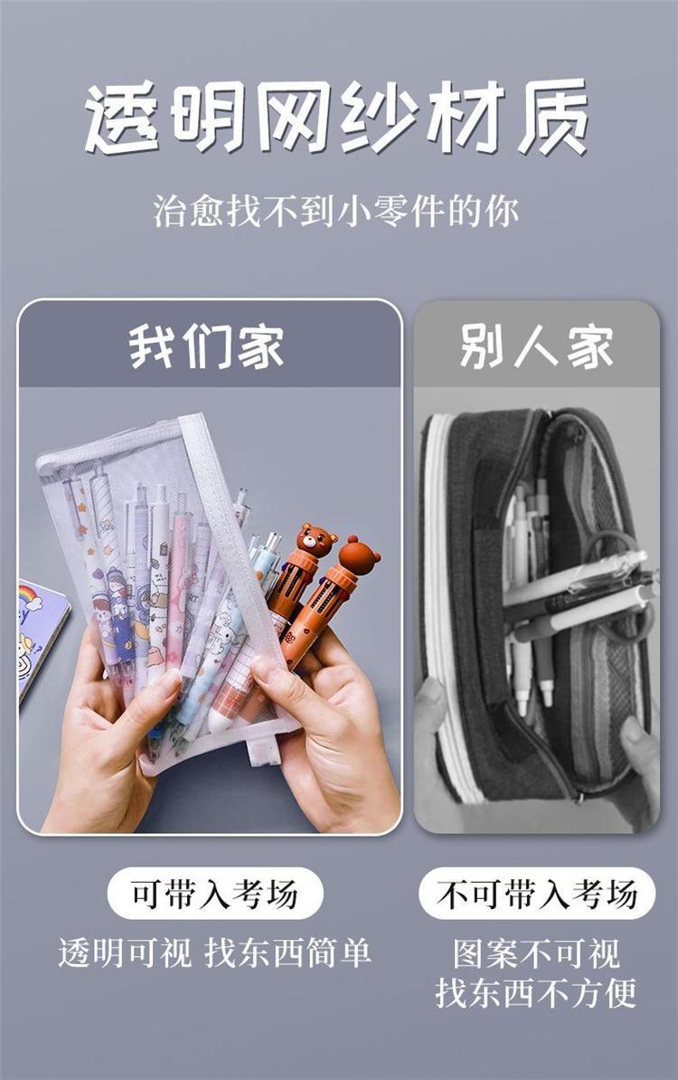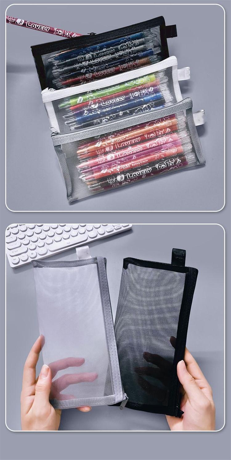 한국식 심플 대용량 투명 연필 가방 메쉬 나일론 고가치 연필 가방 문구 가방 귀여운 어린이 문구스토어 가기