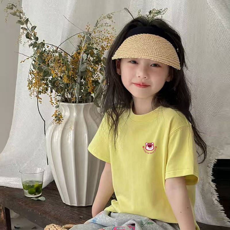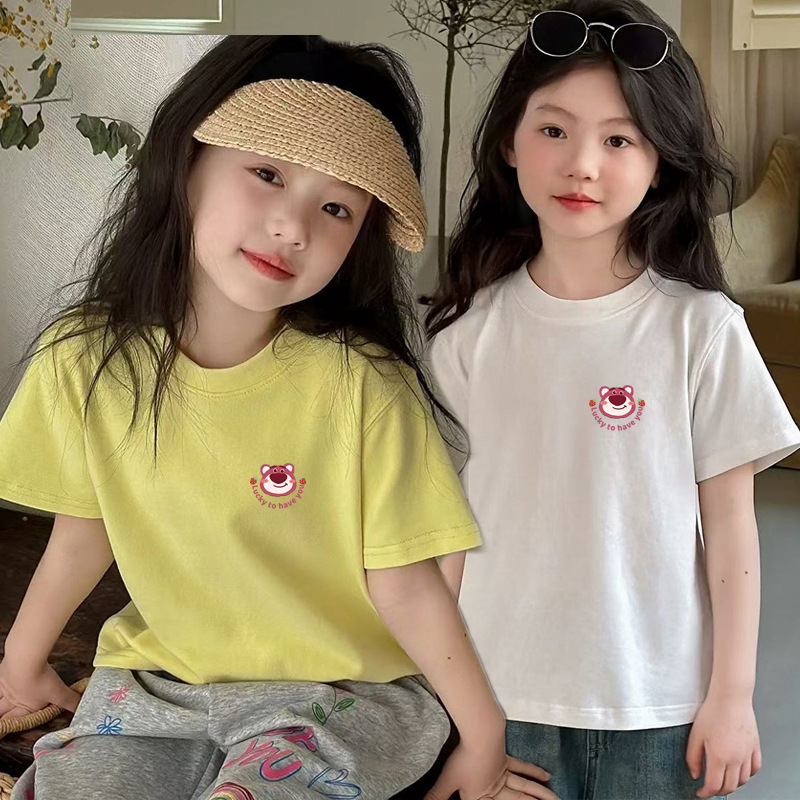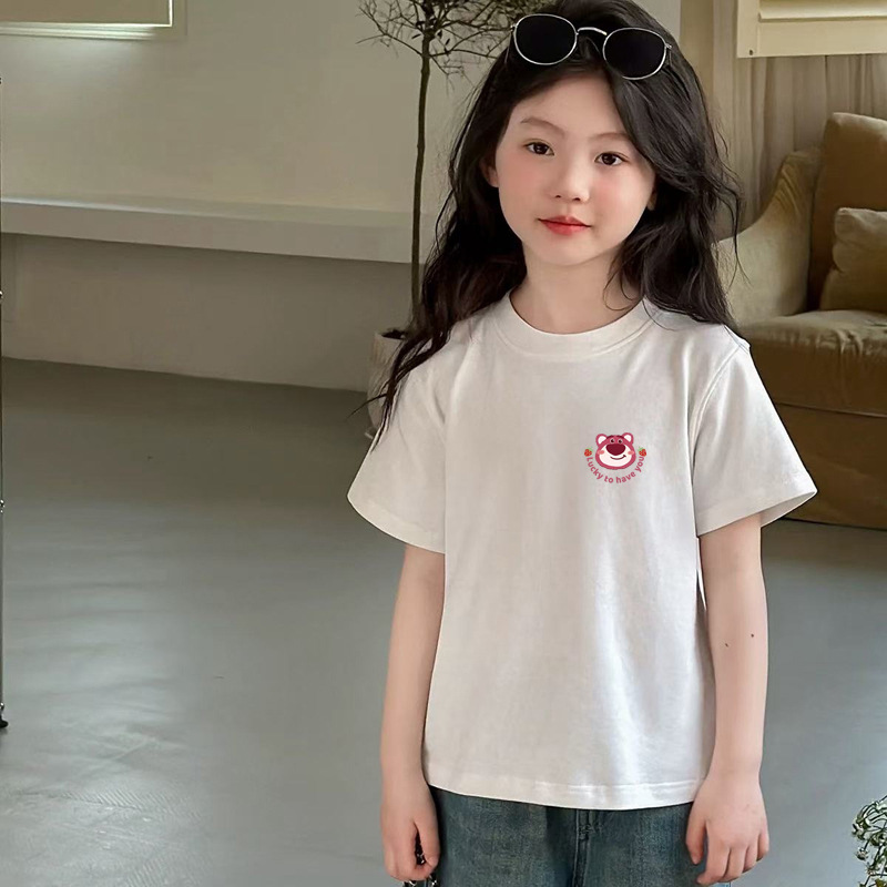 소녀면 반소매 티셔츠 2025 새 여름 어린이 얼음 도자기 면 걸즈 라운드 넥 반소매 티셔츠스토어 가기