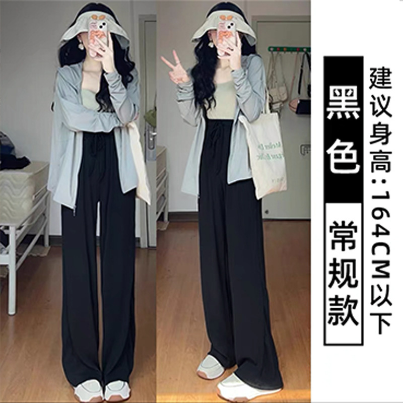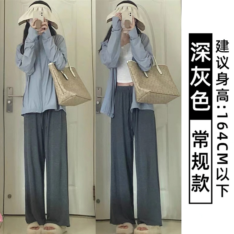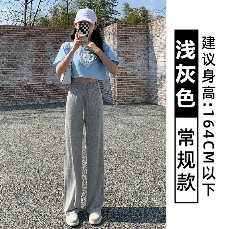 회색 넓은 다리 바지 여성 여름 얇은 높은 허리 Draping 캐주얼 스트레이트 바지 모달 방문 선 스크린 포장 바지스토어 가기