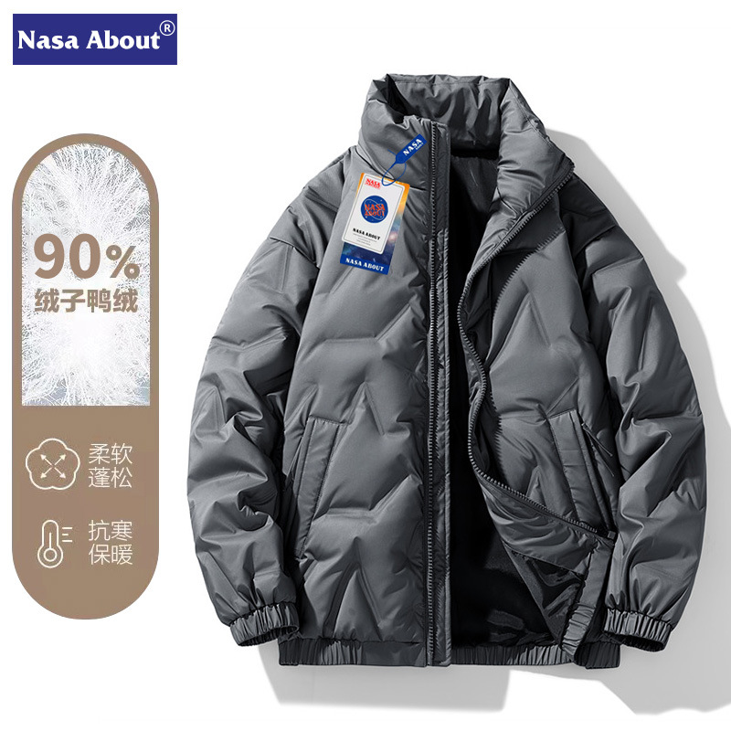 NASA 미국 스타일 남성용 겨울 경량 트렌디 한 브랜드 커플 자켓 남성용 간단한 따뜻한 흰색 오리 다운 재킷