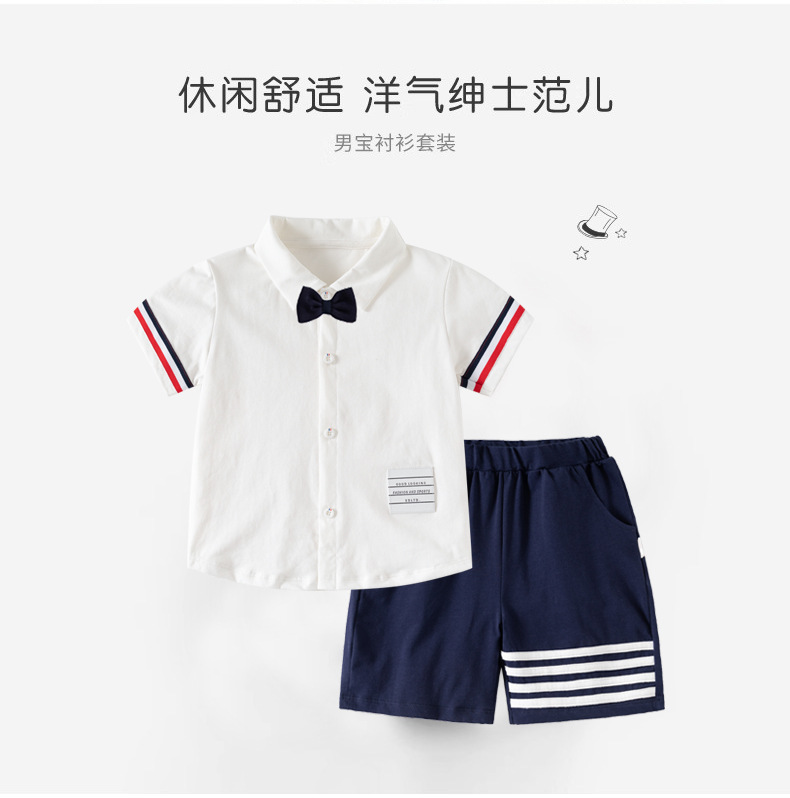 소년의 매우 멋진 반팔 양복 2025 작은 소년 여름 아기 유럽과 미국 여름 어린이 크로스 보더 여름 대외 무역
