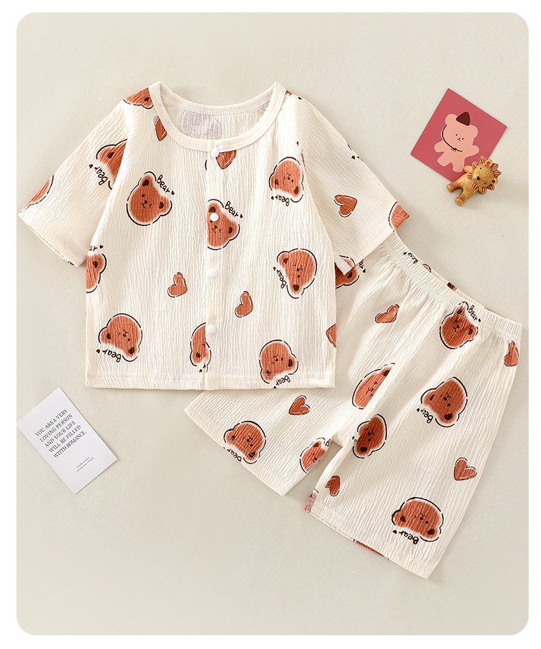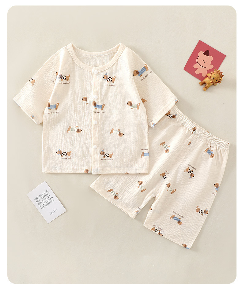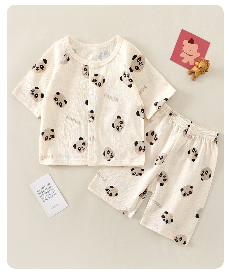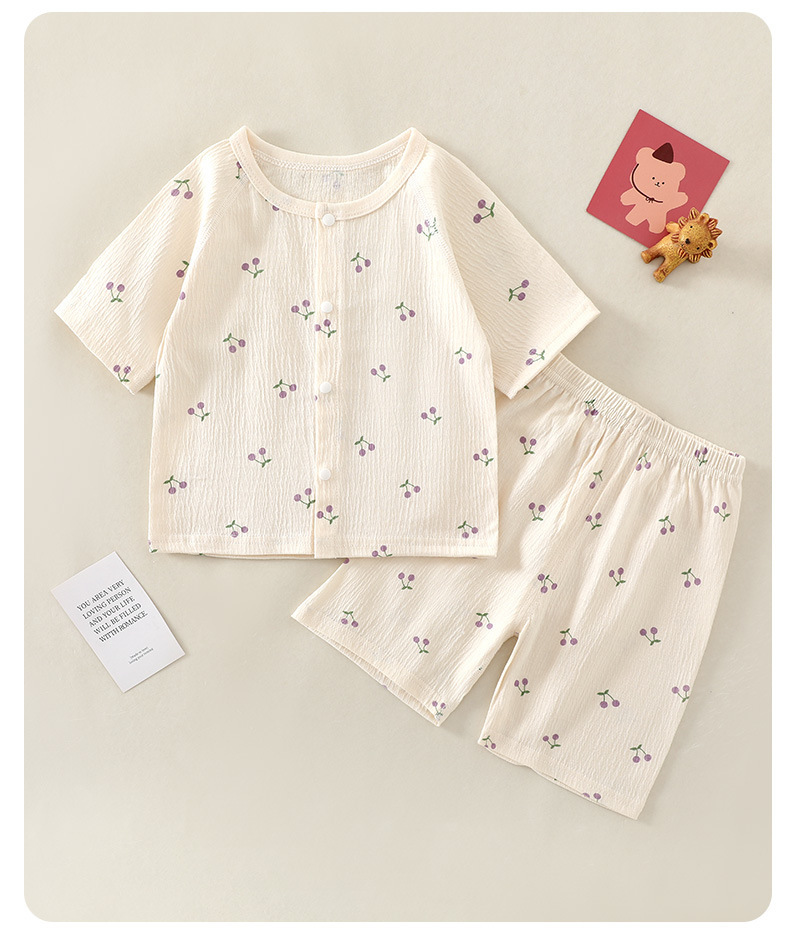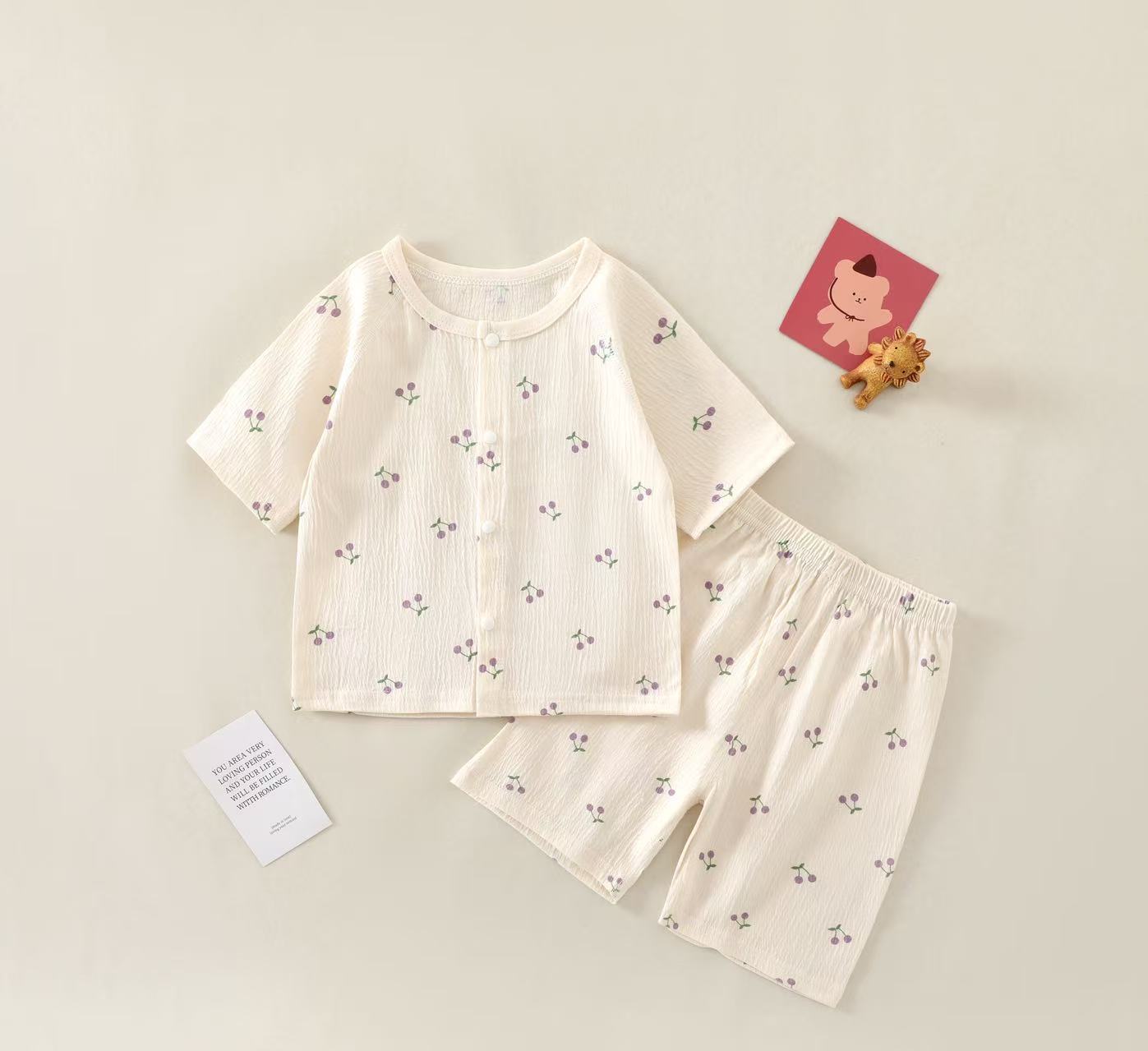 여름 새 클래스 A 베이비 홈 의류 세트 소년 소녀 아기 반팔 카디건 반바지 주름진 코튼 얇은 파자마