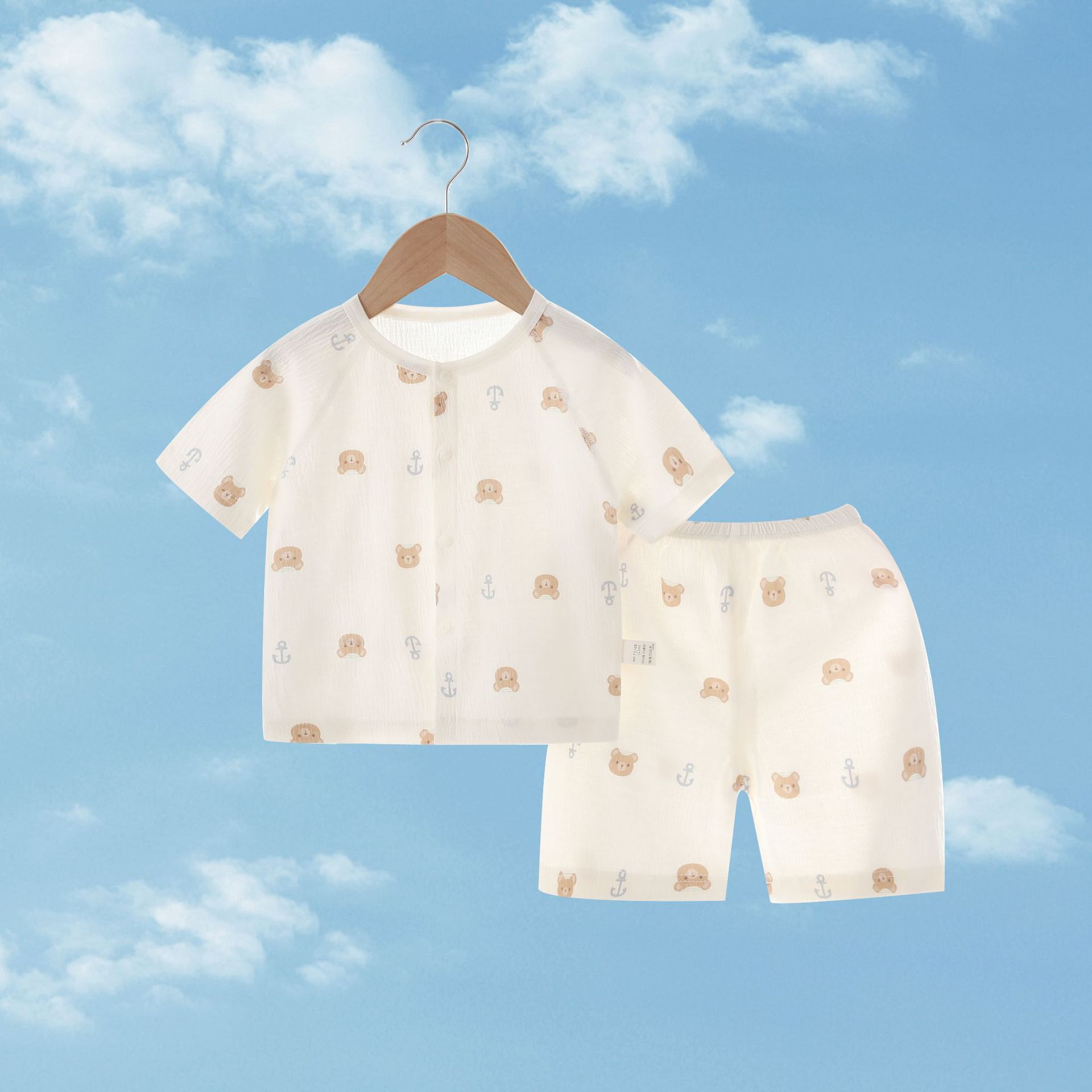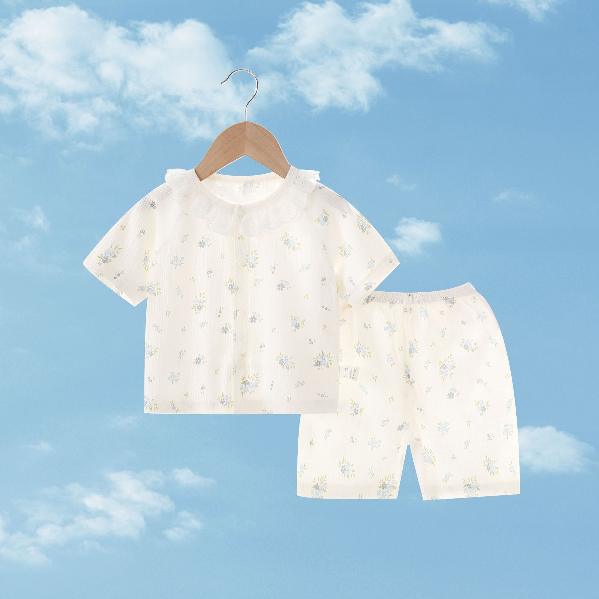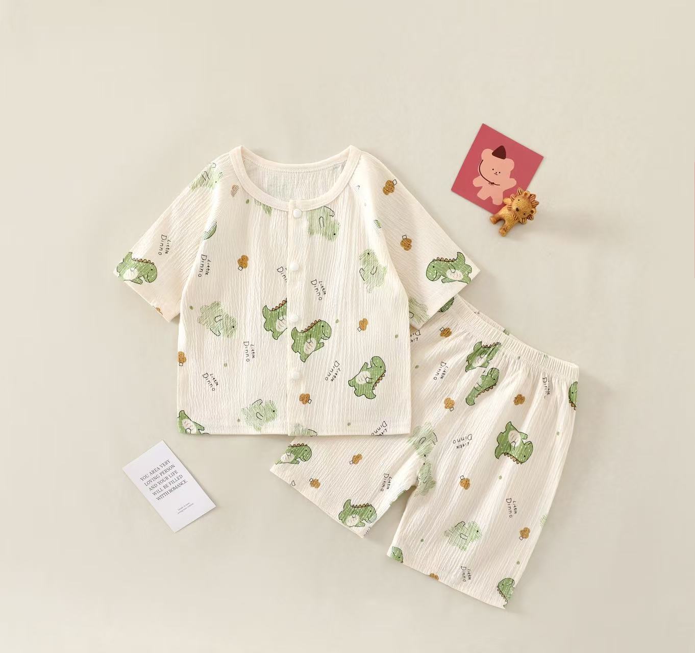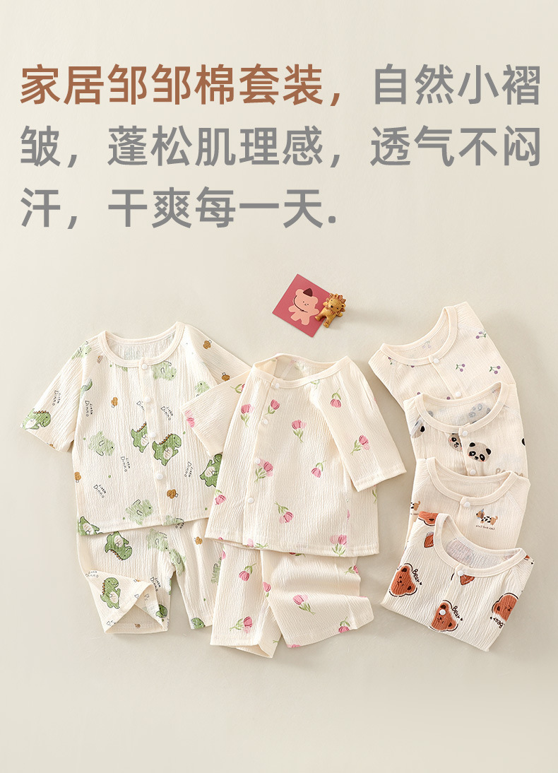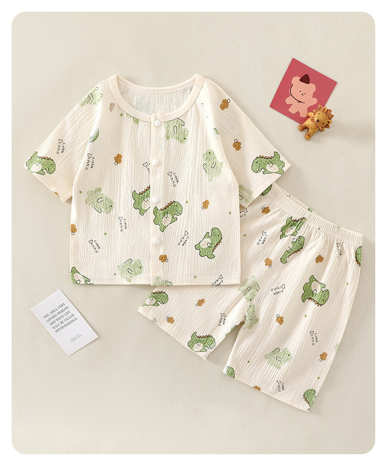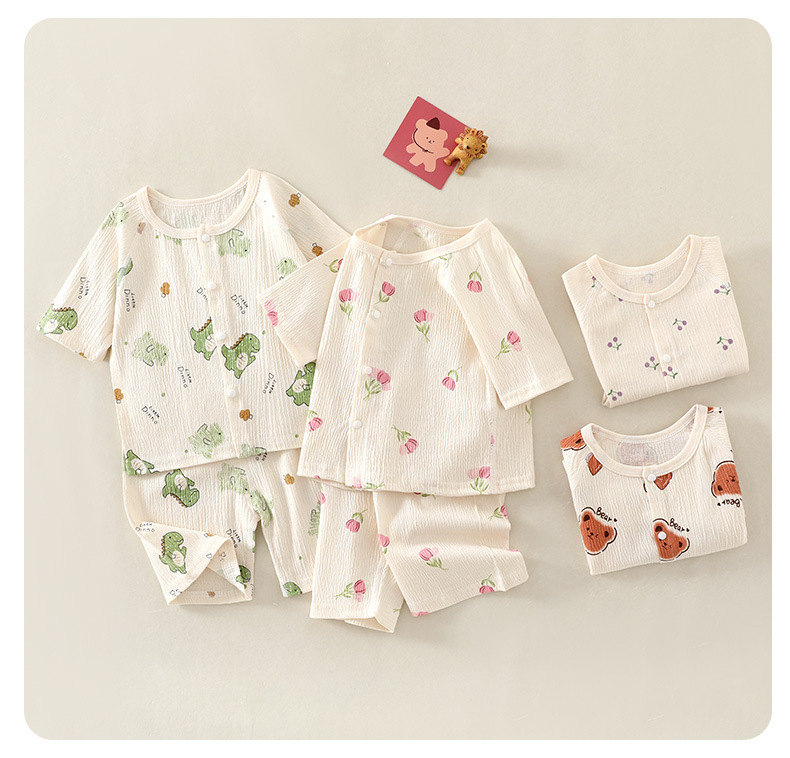 여름 새 클래스 A 베이비 홈 의류 세트 소년 소녀 아기 반팔 카디건 반바지 주름진 코튼 얇은 파자마스토어 가기