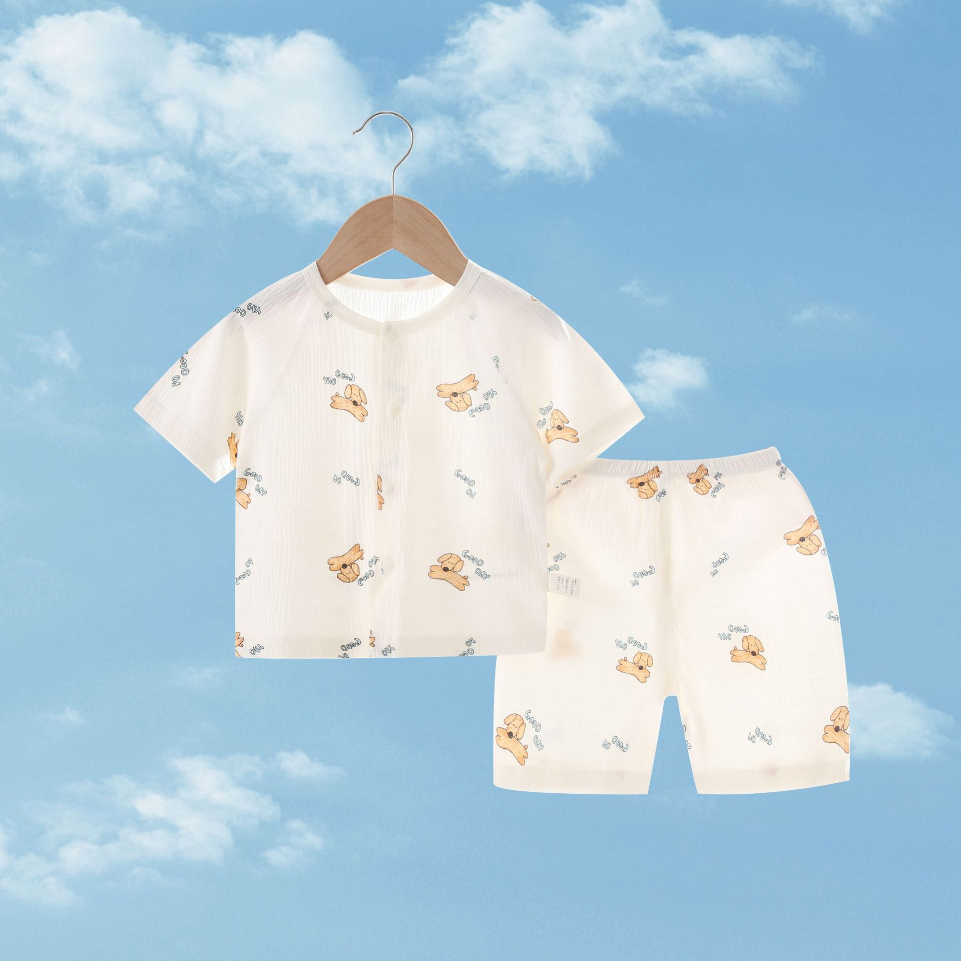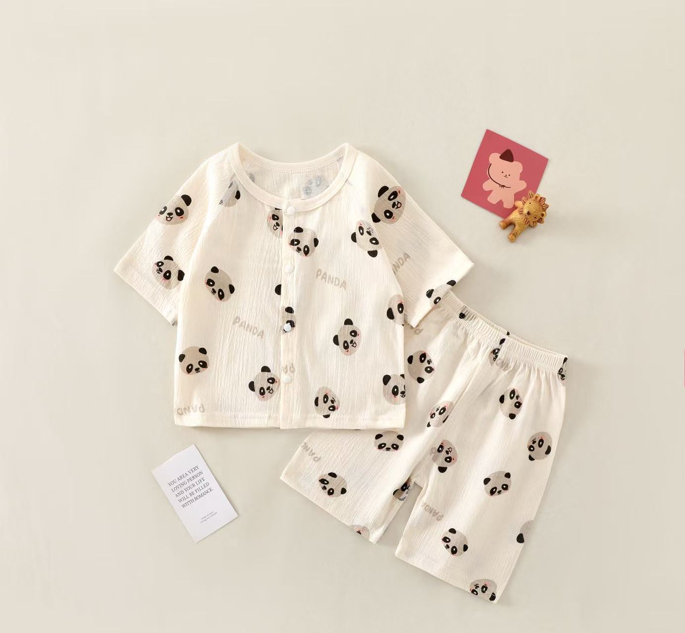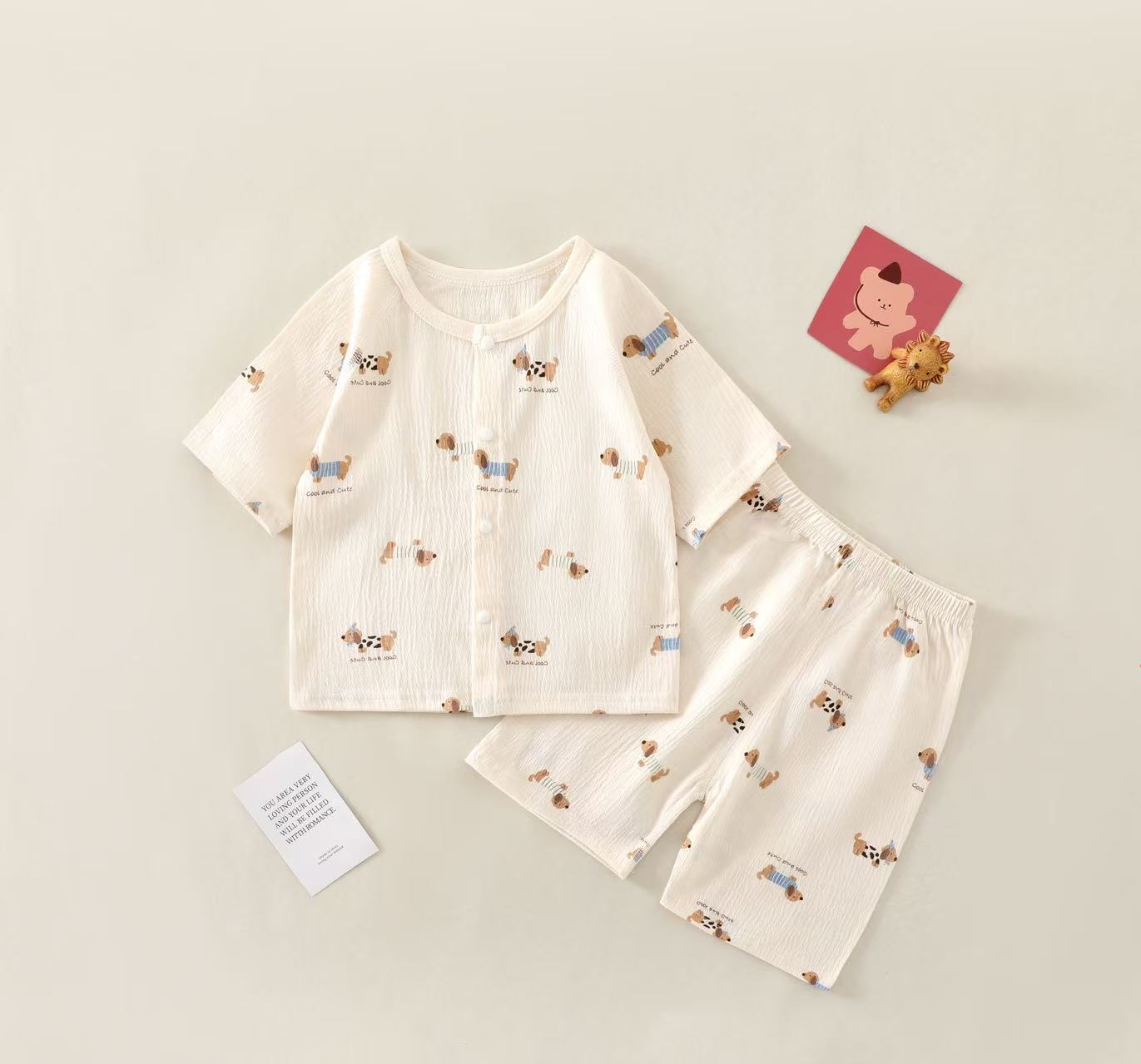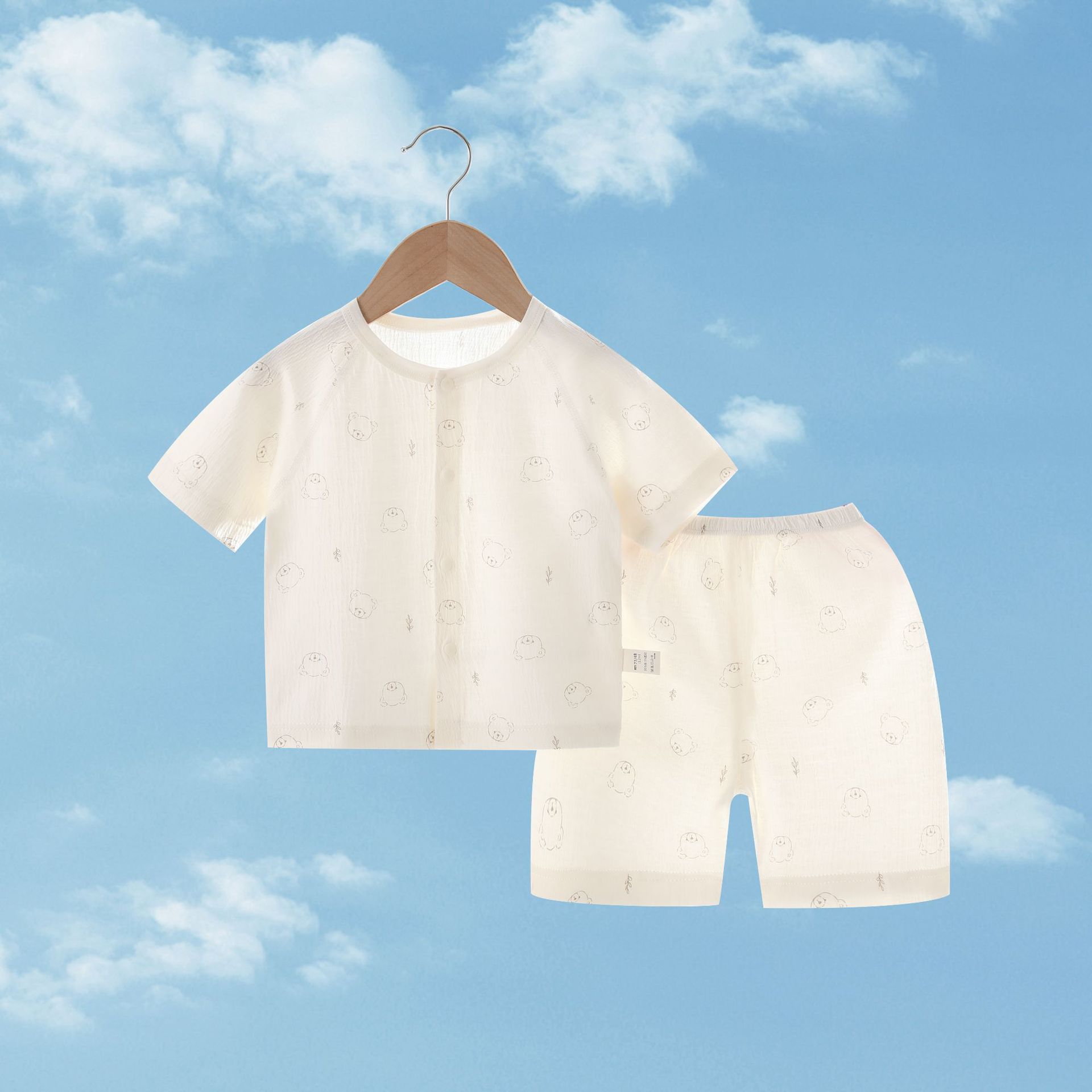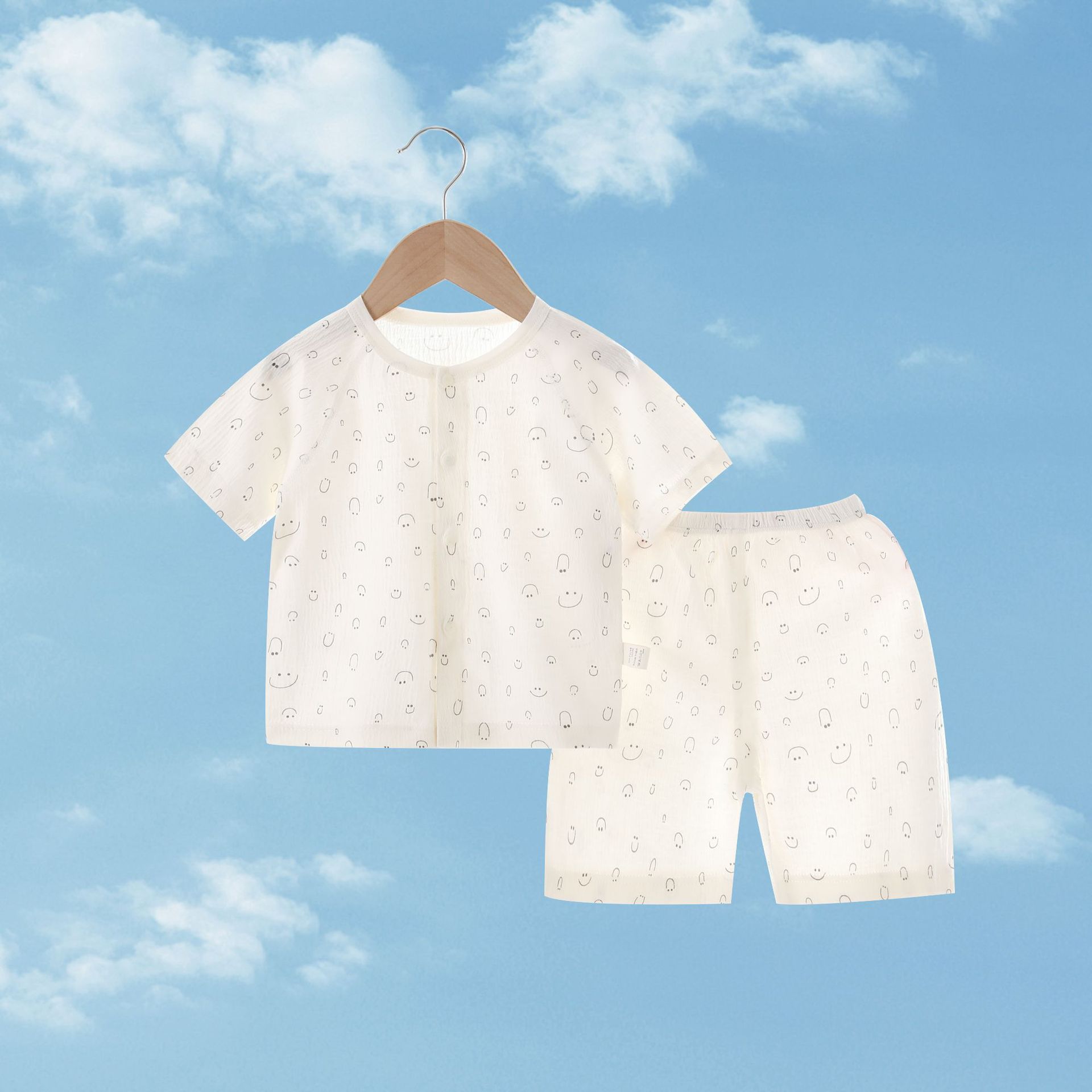 여름 새 클래스 A 베이비 홈 의류 세트 소년 소녀 아기 반팔 카디건 반바지 주름진 코튼 얇은 파자마스토어 가기