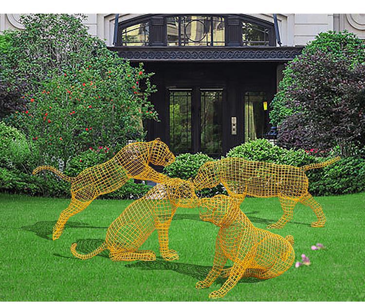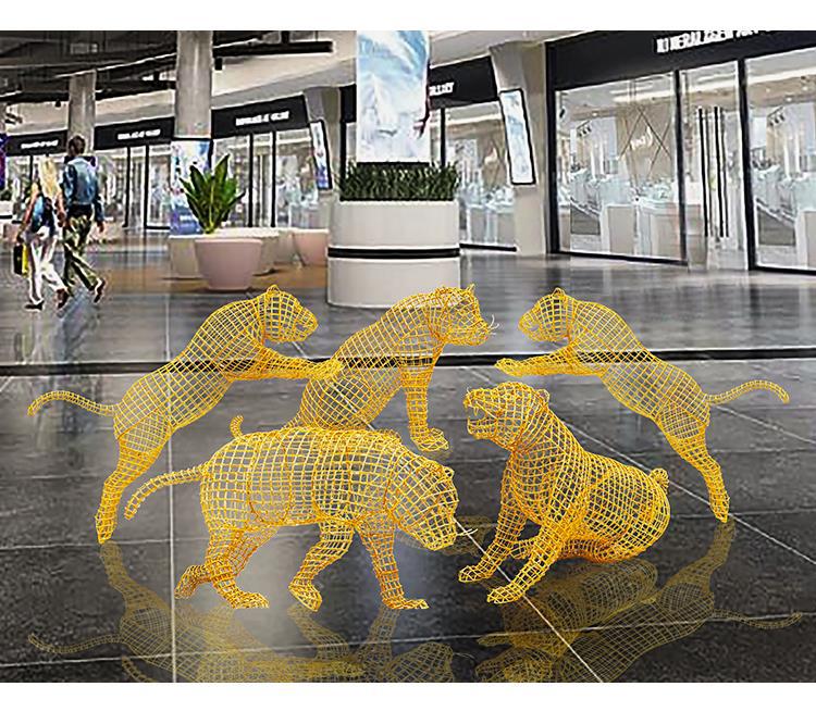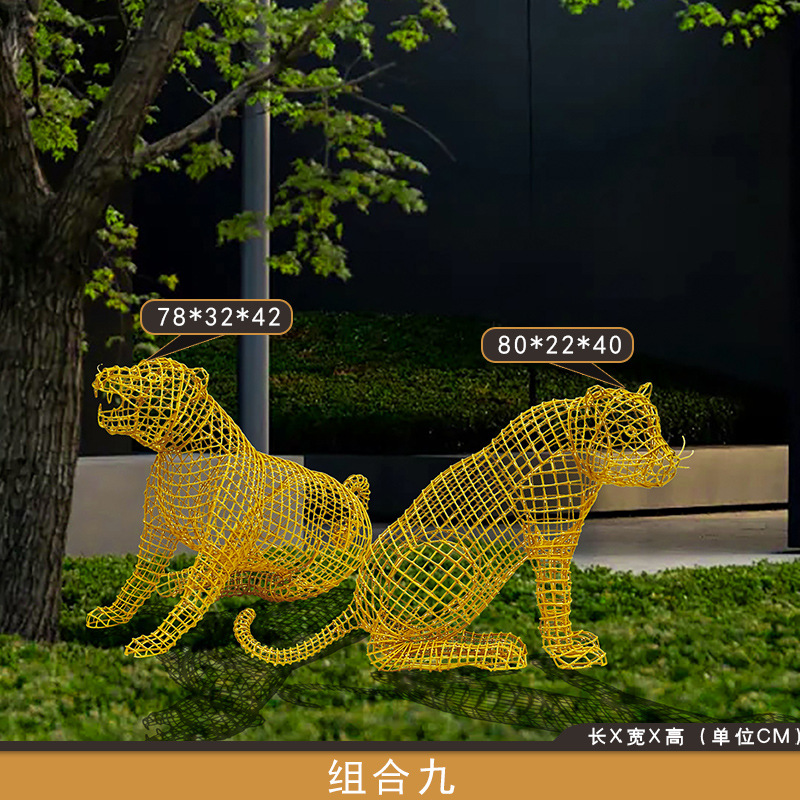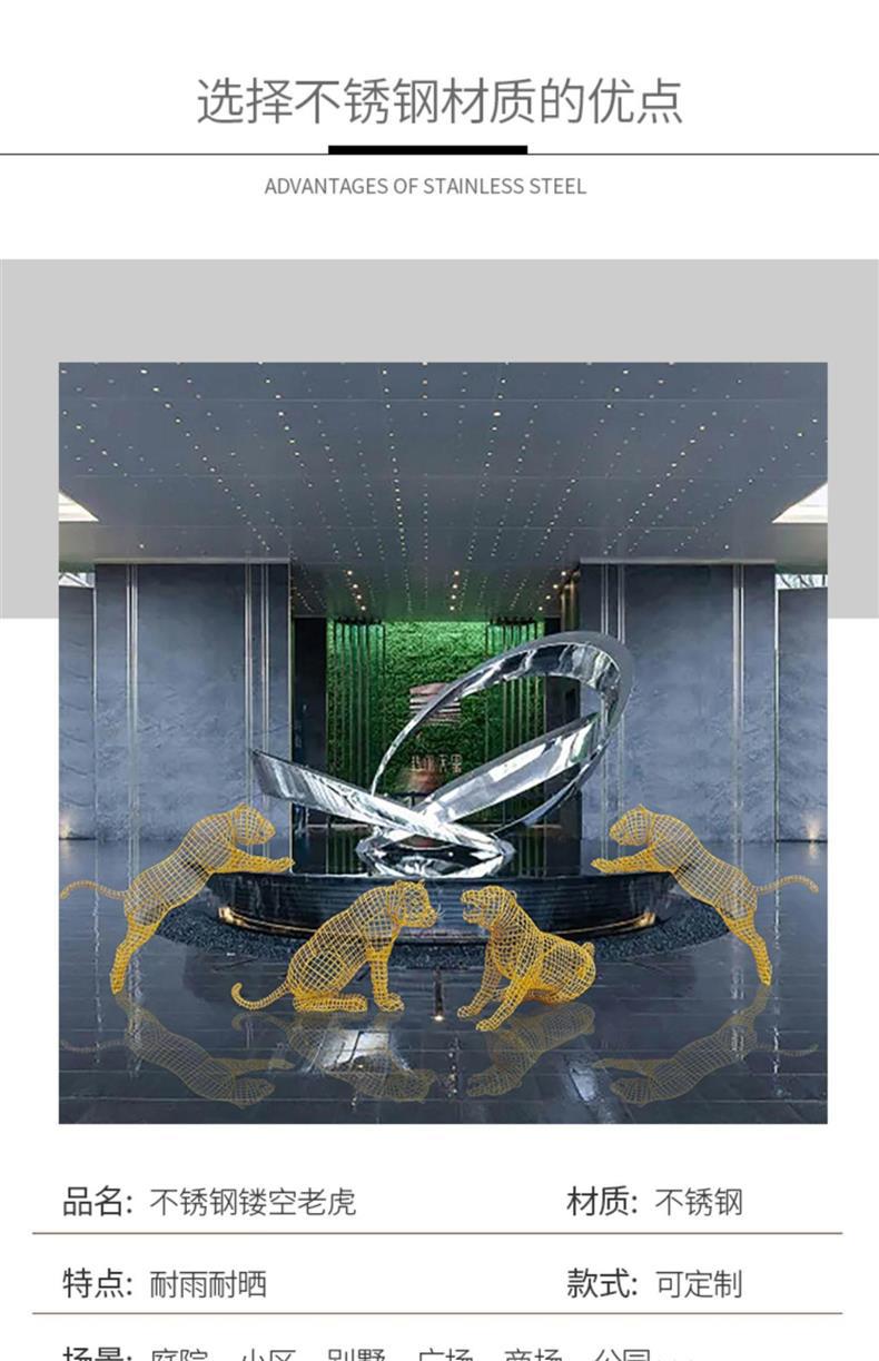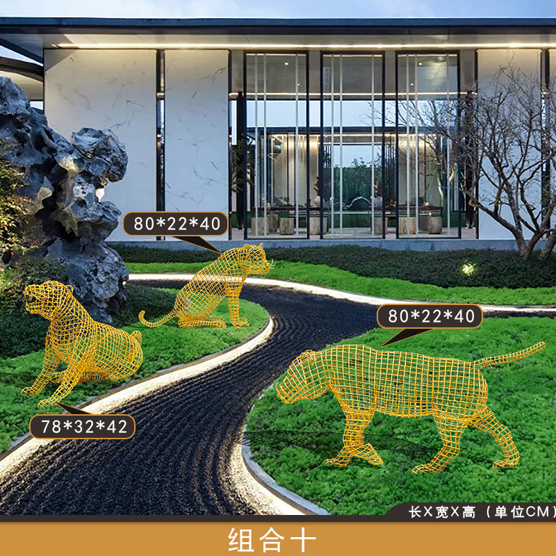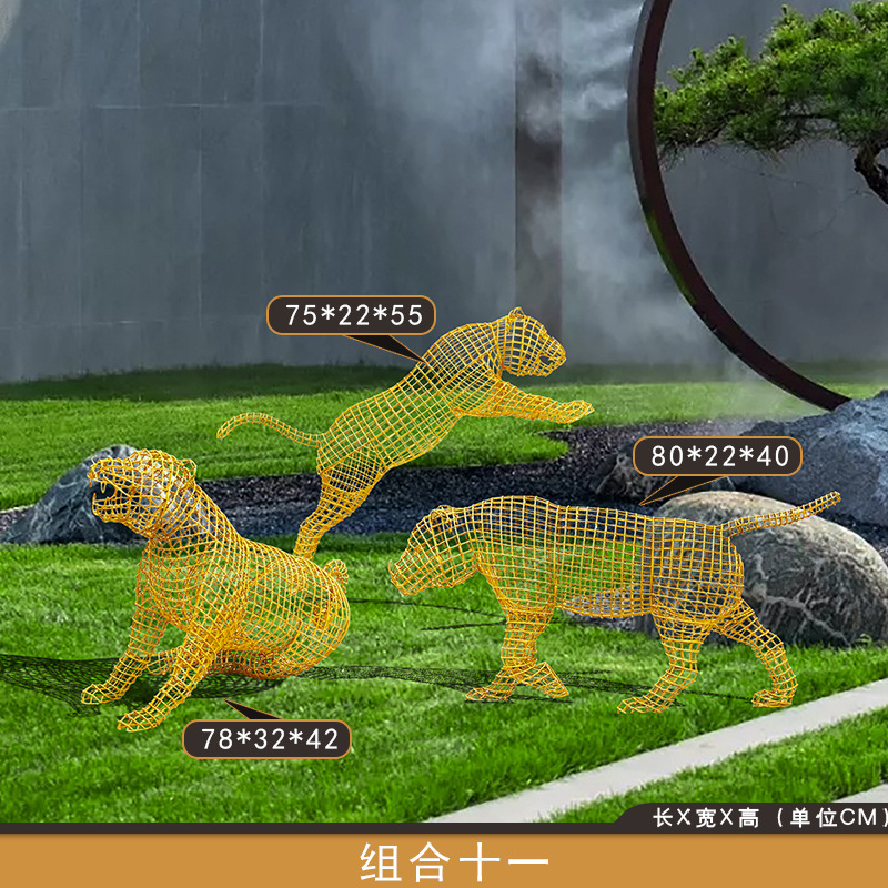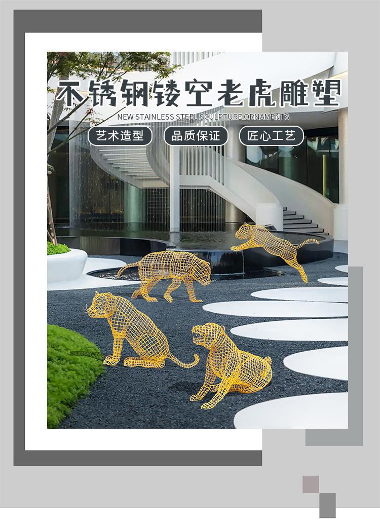 스테인레스 스틸 중공 철 호랑이 조각 야외 풍경 동물 바닥 장식품 안뜰 장식 아름다운 첸