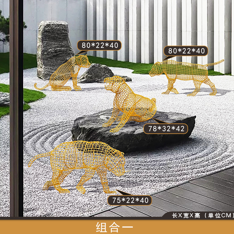 스테인레스 스틸 중공 철 호랑이 조각 야외 풍경 동물 바닥 장식품 안뜰 장식 아름다운 첸스토어 가기