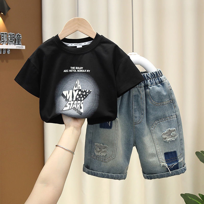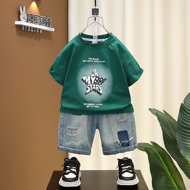 소년 여름 캐주얼 스포츠 세트 아기 여름 얇은 반팔 옷 24 어린이를위한 새로운 투피스 세트