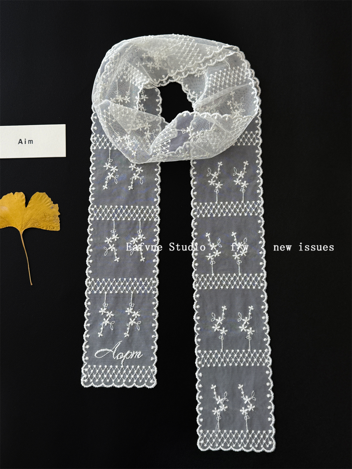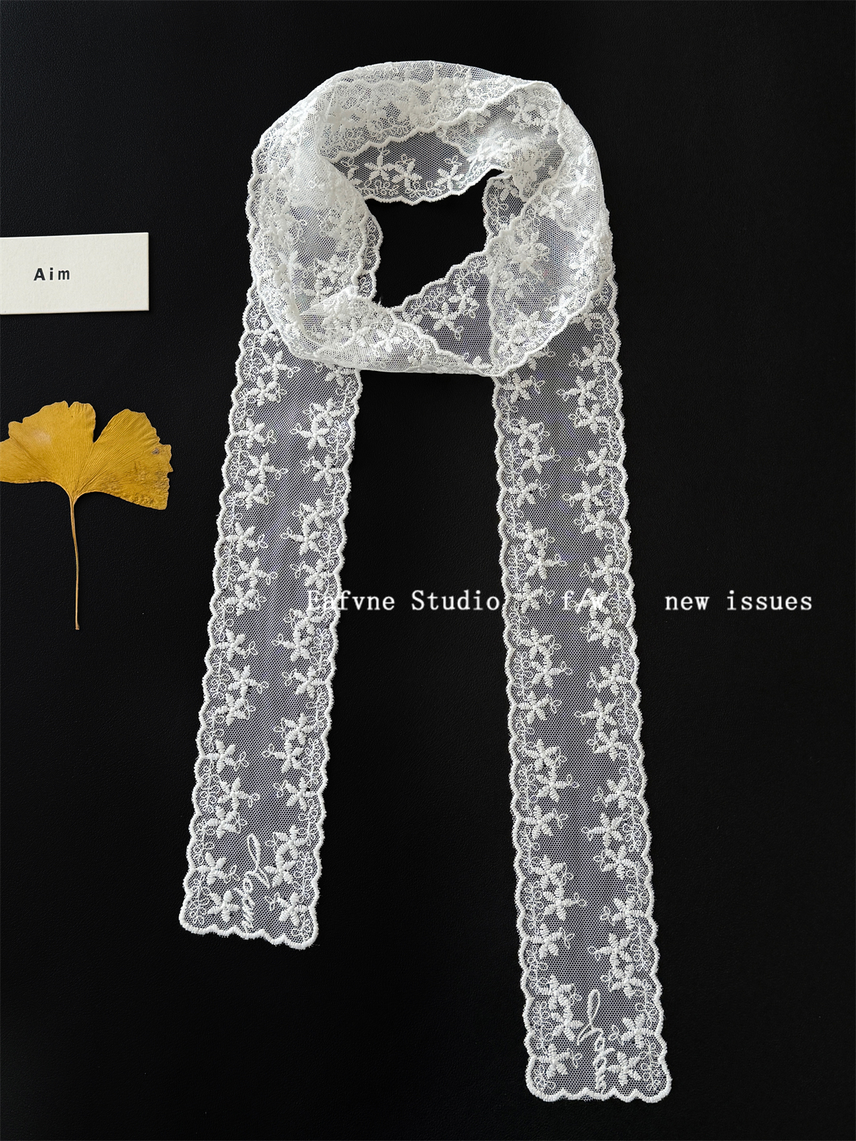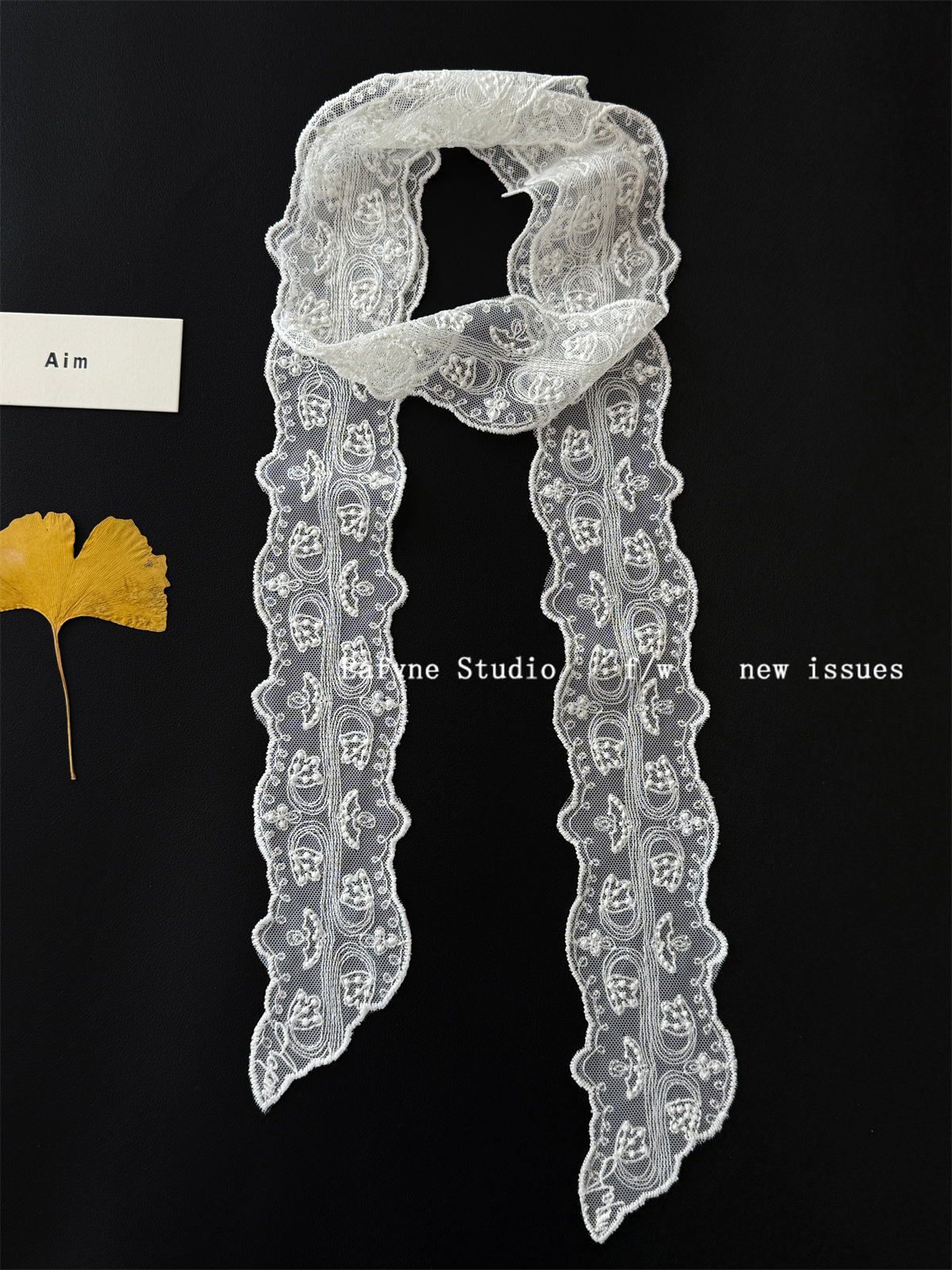 로코코 스타일 레이스 실크 스카프 여성의 봄과 여름 새로운 도착 꽃 올매치 롱 턱받이 리본 얇은 좁은 넥타이 헤어 헤드웨어스토어 가기
