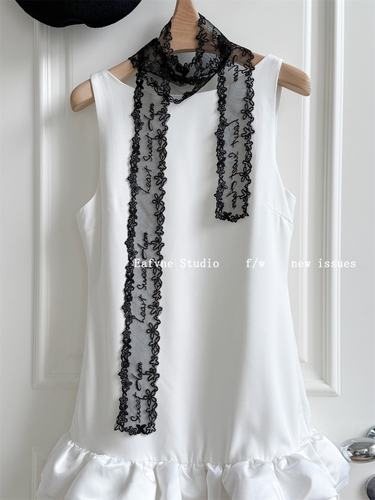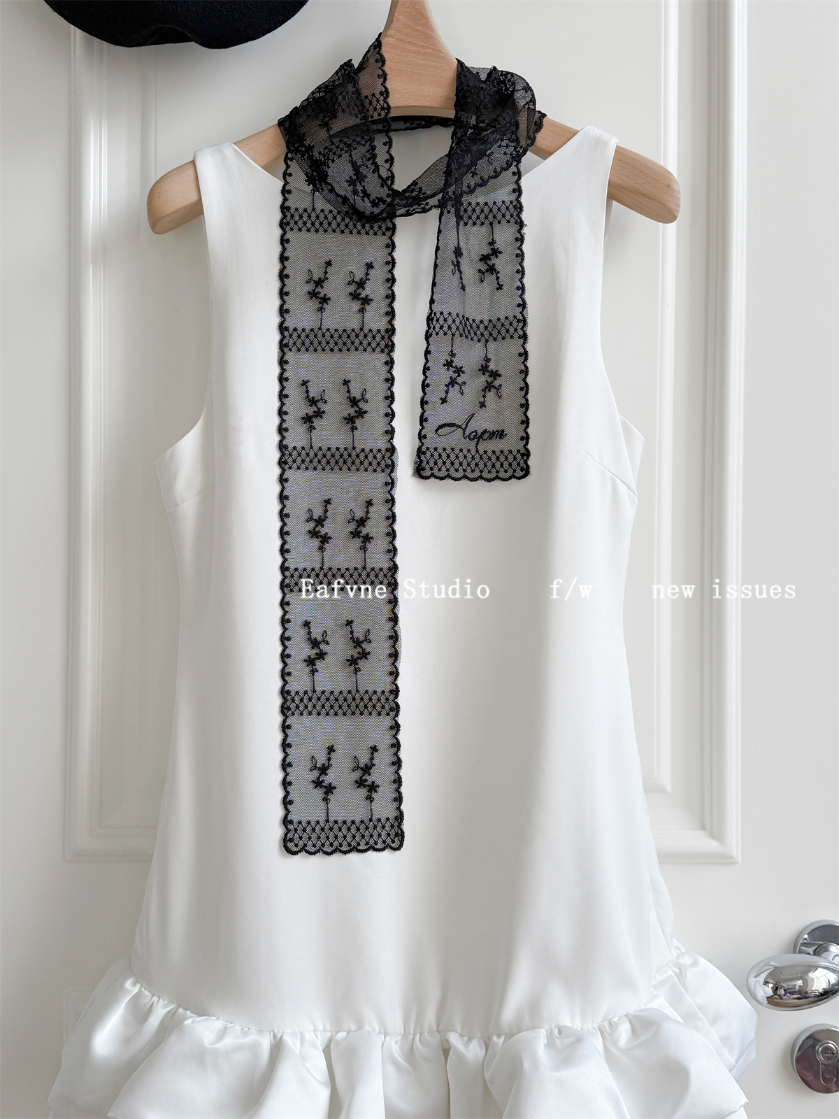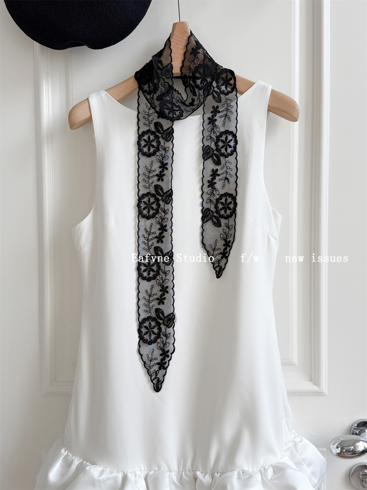 로코코 스타일 레이스 실크 스카프 여성의 봄과 여름 새로운 도착 꽃 올매치 롱 턱받이 리본 얇은 좁은 넥타이 헤어 헤드웨어스토어 가기