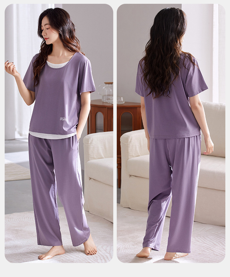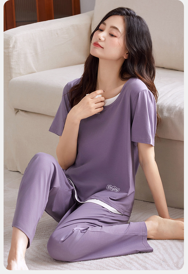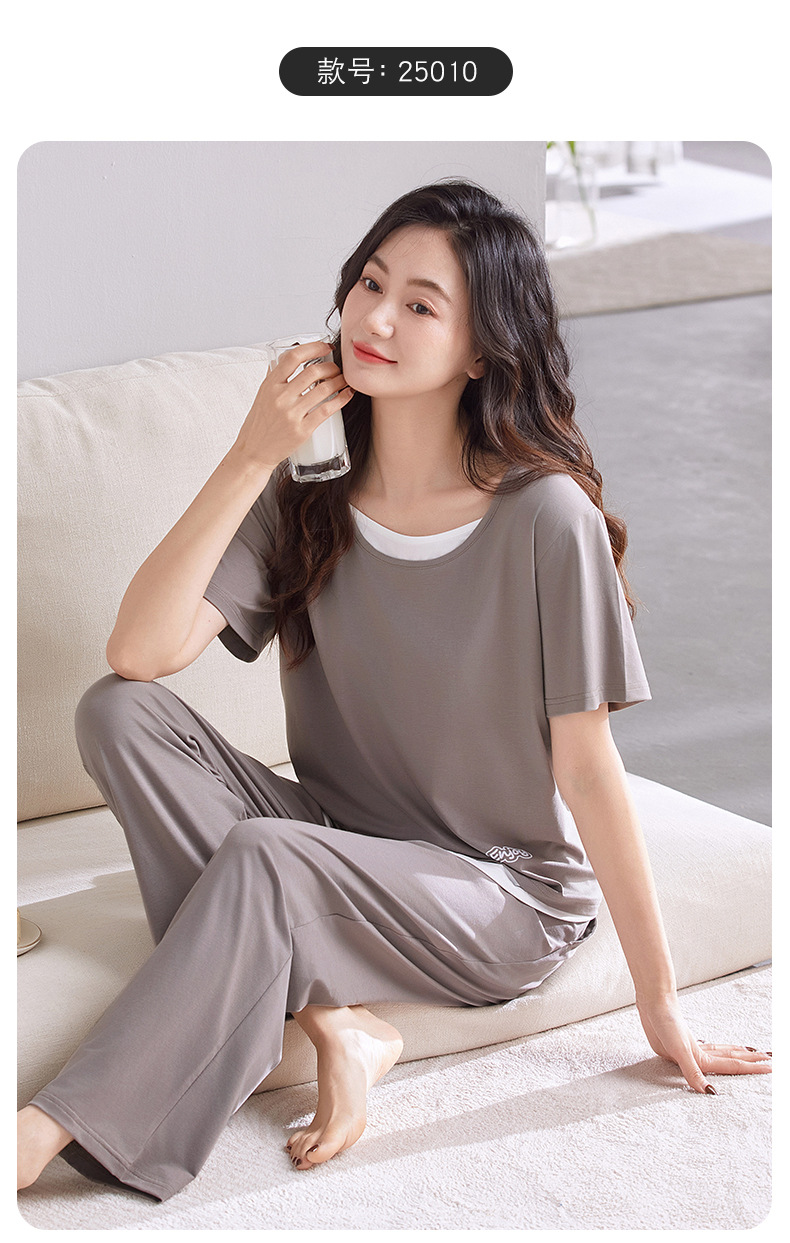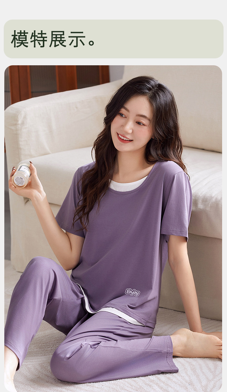 2025 새로운 란징 모달 쿨 파자마 여성 여름 간단한 캐주얼 세트 여름 홈 의류스토어 가기