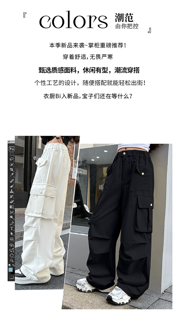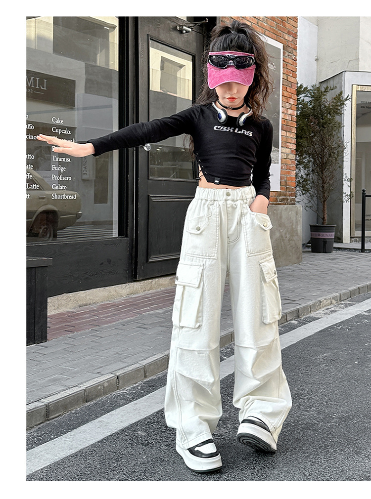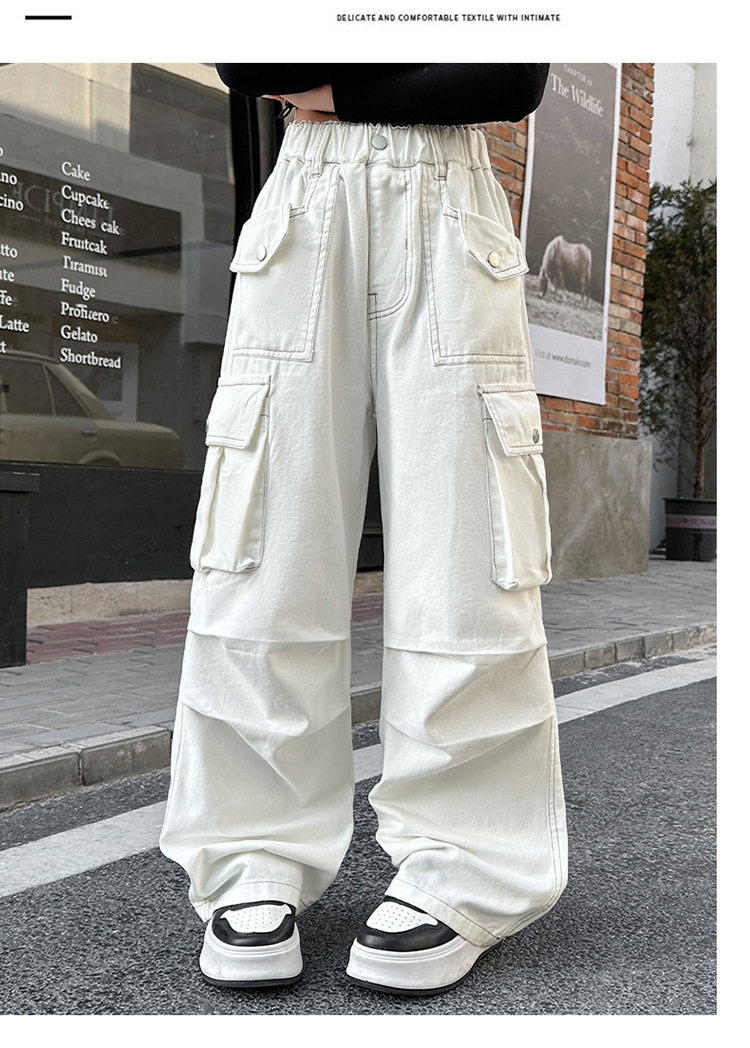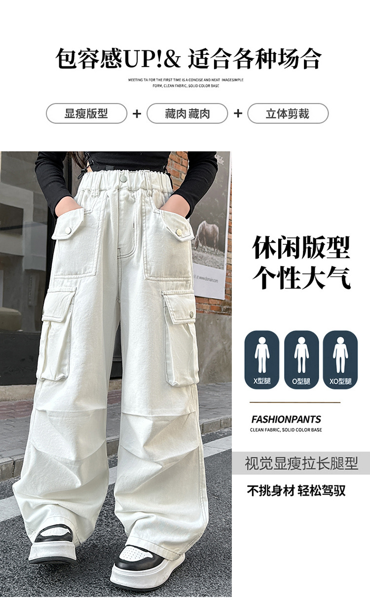 여아 바지 2025 봄 가을 새로운 스타일 중대형 아동 캐주얼 바지 여아 패셔너블하고 다재다능한 와이드 팬츠