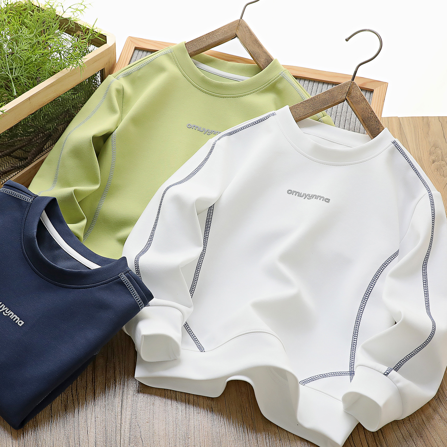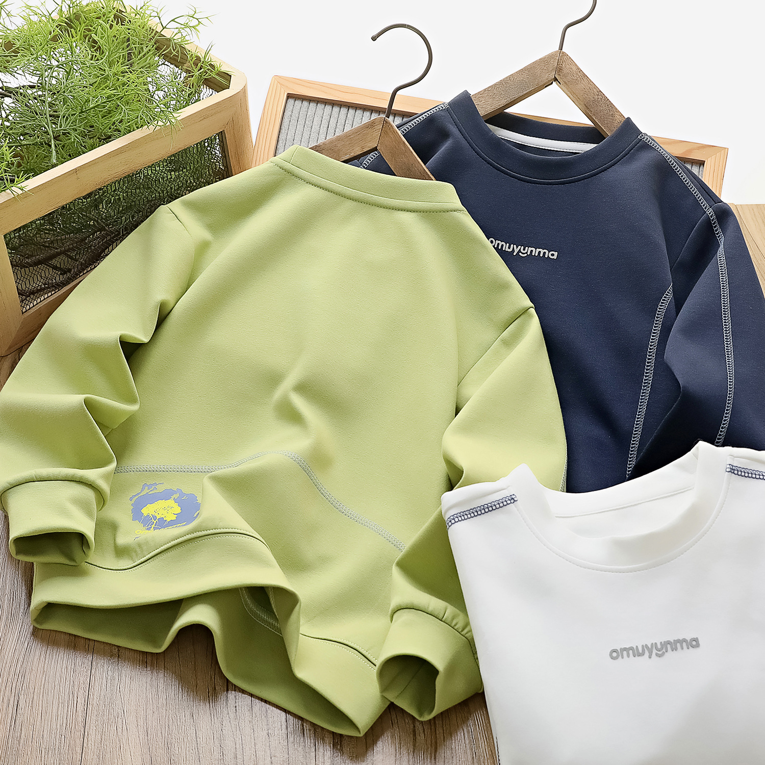 봄 새로운 cuhk 소년 대마 실크 스웨터 통기성 땀 흡수 스포츠 레저는 대외 무역 품질 공장에 적합합니다.