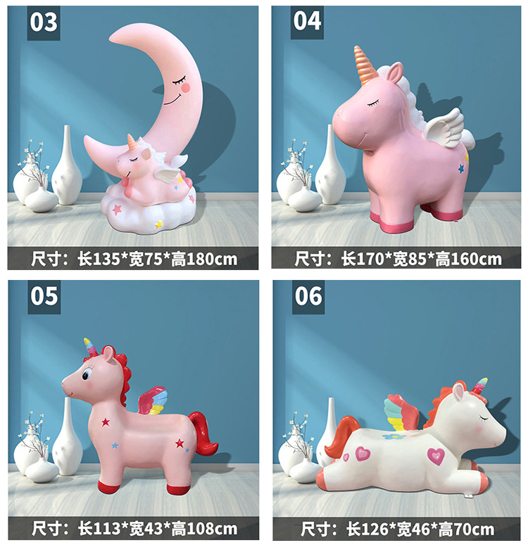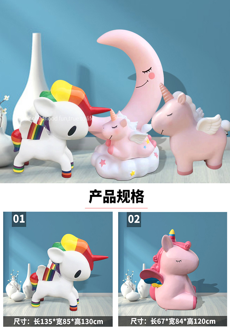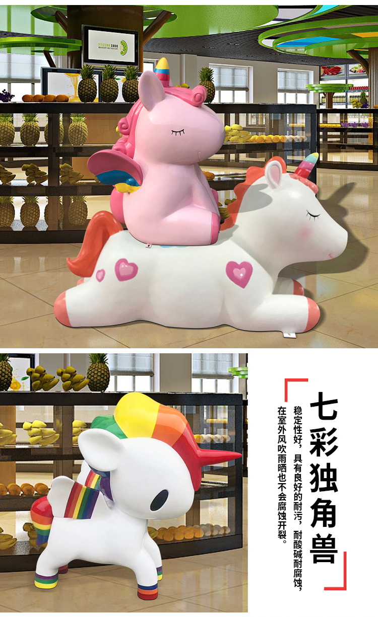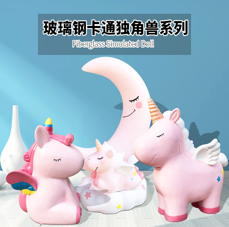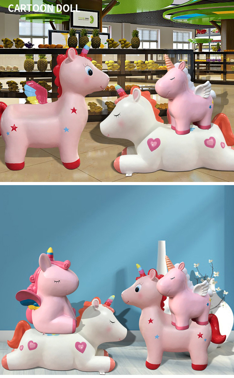 인터넷 유명 인사 유리 섬유 강화 플라스틱 만화 유니콘 장식 결혼식 놀이 공원 쇼핑몰 야외 조각 아름다운 첸 대형 장식품스토어 가기