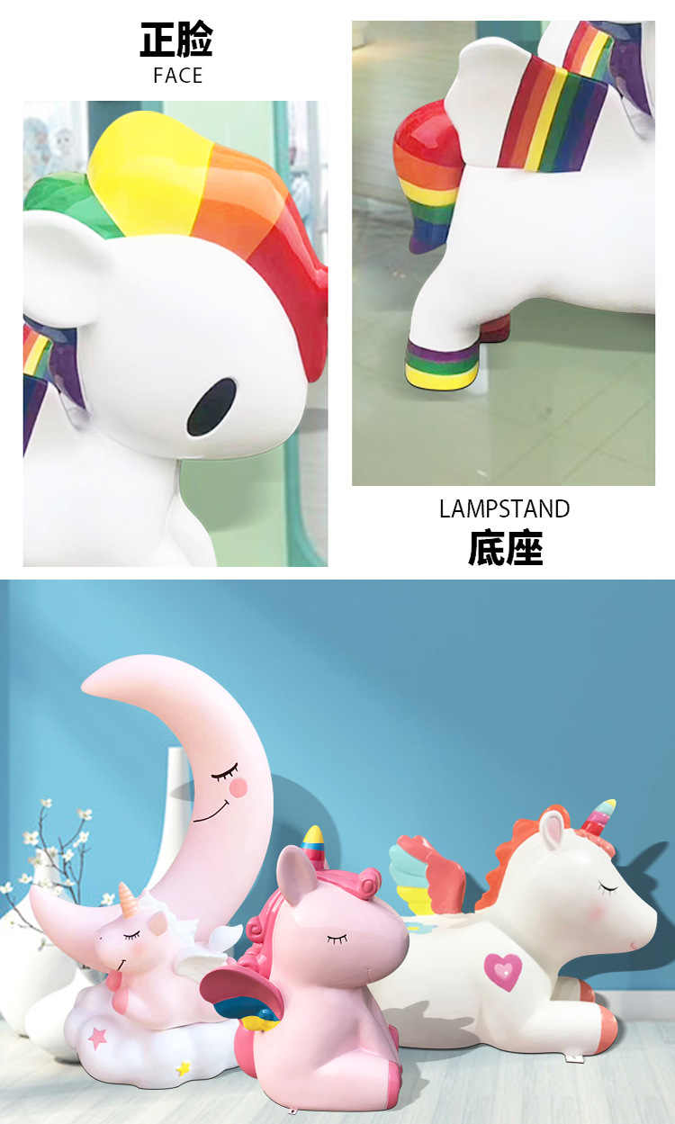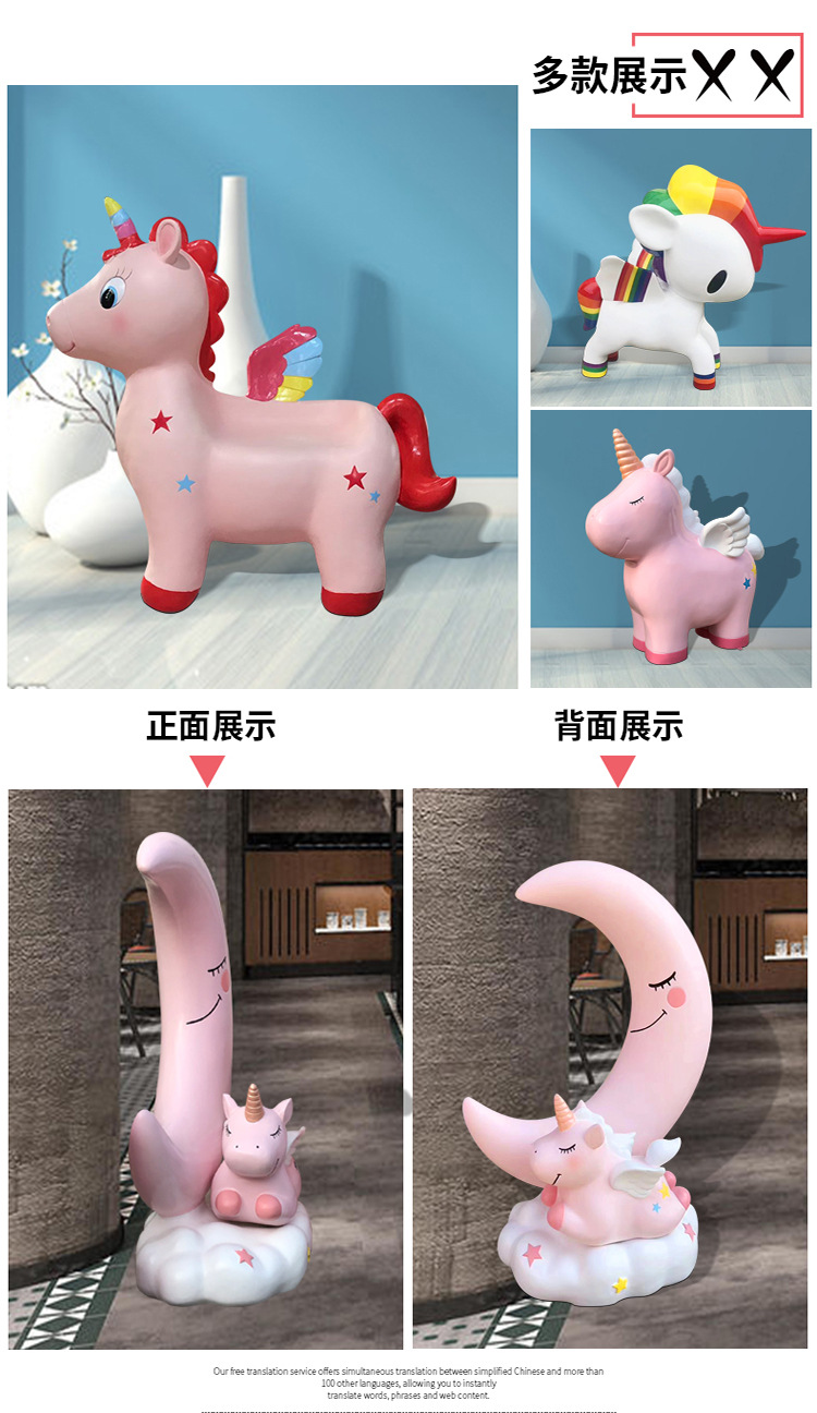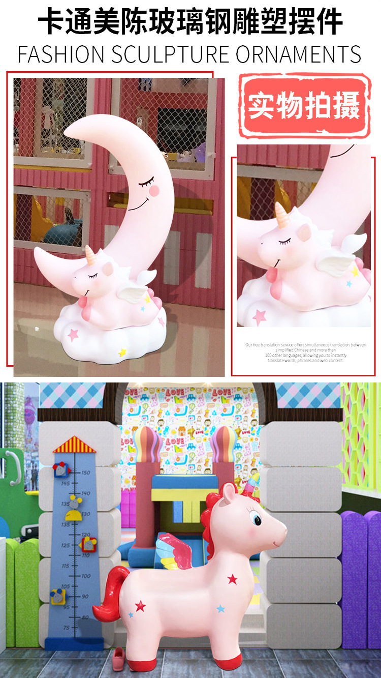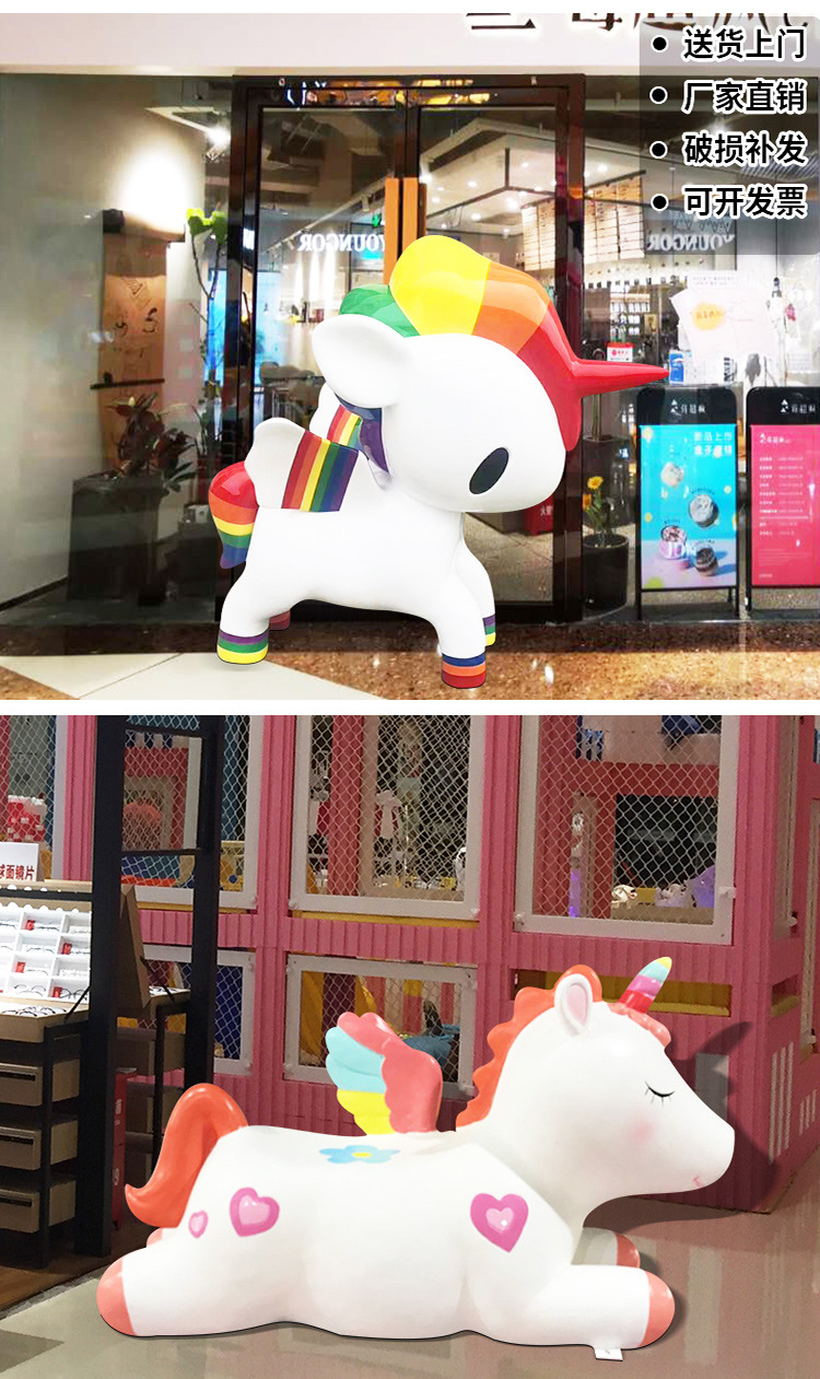인터넷 유명 인사 유리 섬유 강화 플라스틱 만화 유니콘 장식 결혼식 놀이 공원 쇼핑몰 야외 조각 아름다운 첸 대형 장식품스토어 가기