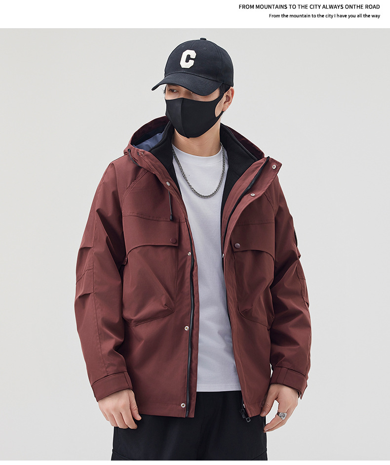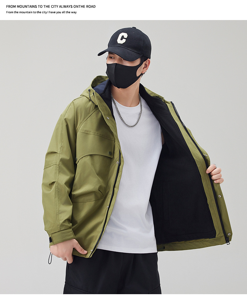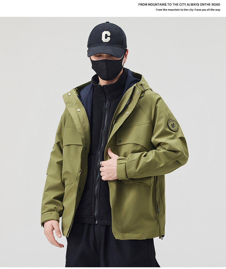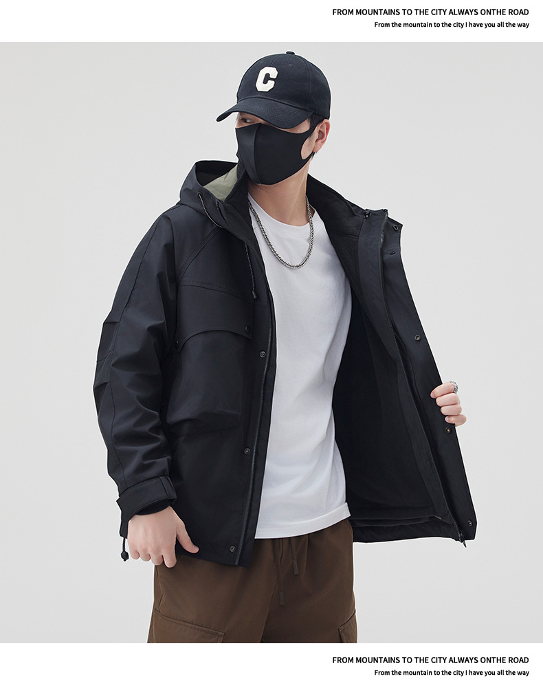 남성 봄과 가을 작업 재킷 트렌디 한 브랜드 미국 스타일 야외 등산 세트 러시 의류 소년 느슨한 올 매치 후드 자켓