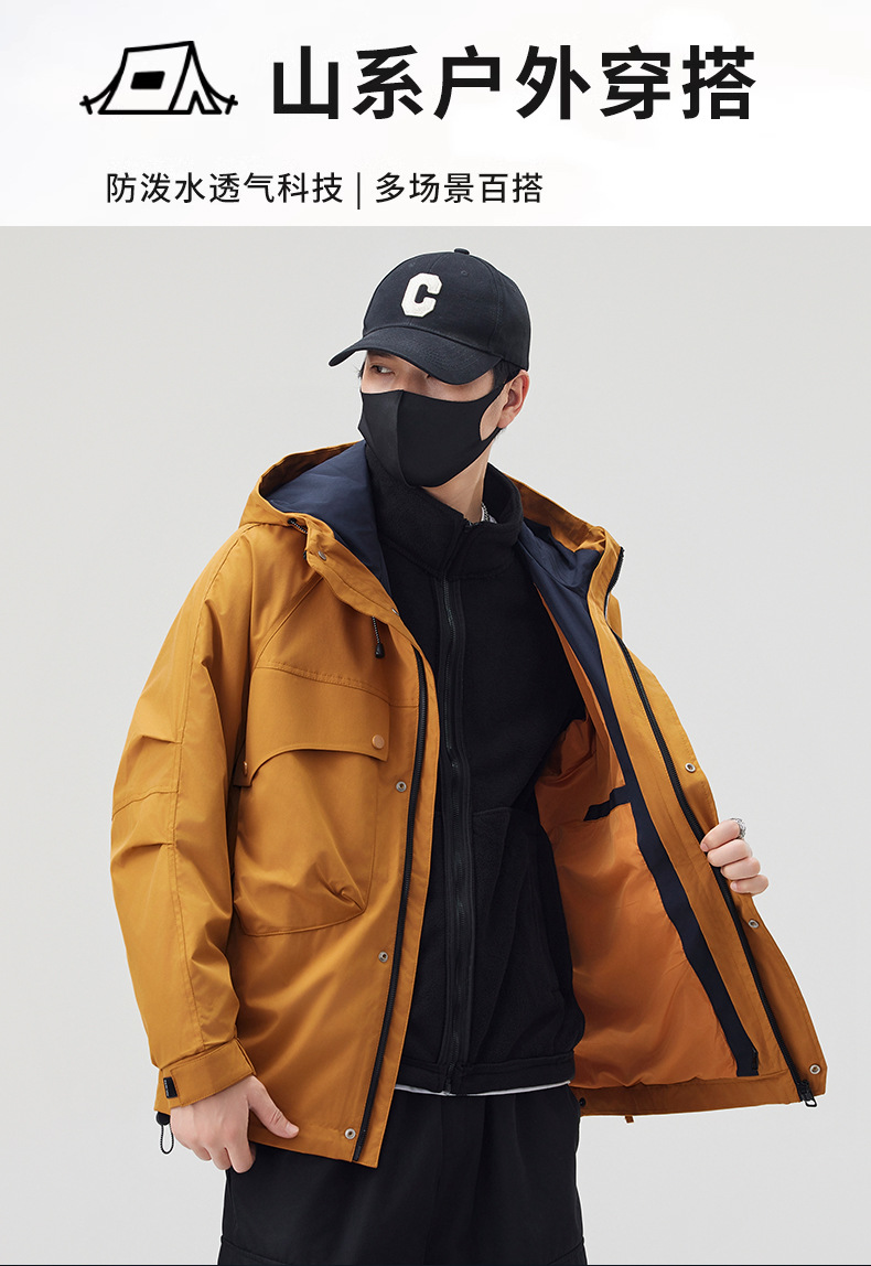 남성 봄과 가을 작업 재킷 트렌디 한 브랜드 미국 스타일 야외 등산 세트 러시 의류 소년 느슨한 올 매치 후드 자켓스토어 가기