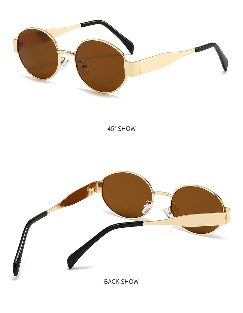 새로운 금속 선글라스 여성의 높은 감각 복고풍 작은 프레임 타원형 고양이 눈 선글라스 UV 보호 선글라스