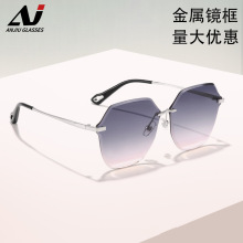 새로운 금속 선글라스 여성의 높은 감각 복고풍 작은 프레임 타원형 고양이 눈 선글라스 UV 보호 선글라스스토어 가기