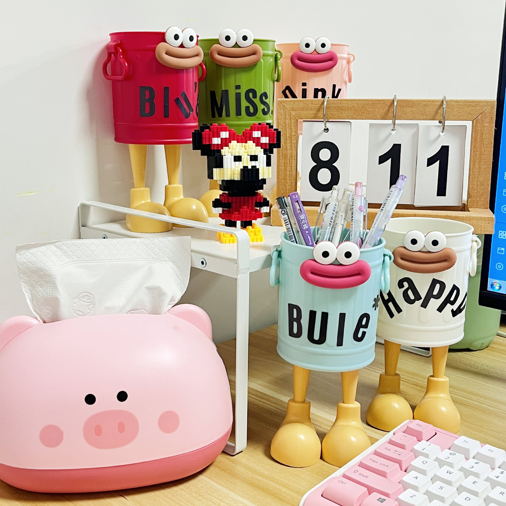 크리 에이 티브 귀여운 펜 홀더 대용량 학생 데스크탑 스토리지 박스 소녀 사무실 어린이 빛 럭셔리 장식품스토어 가기