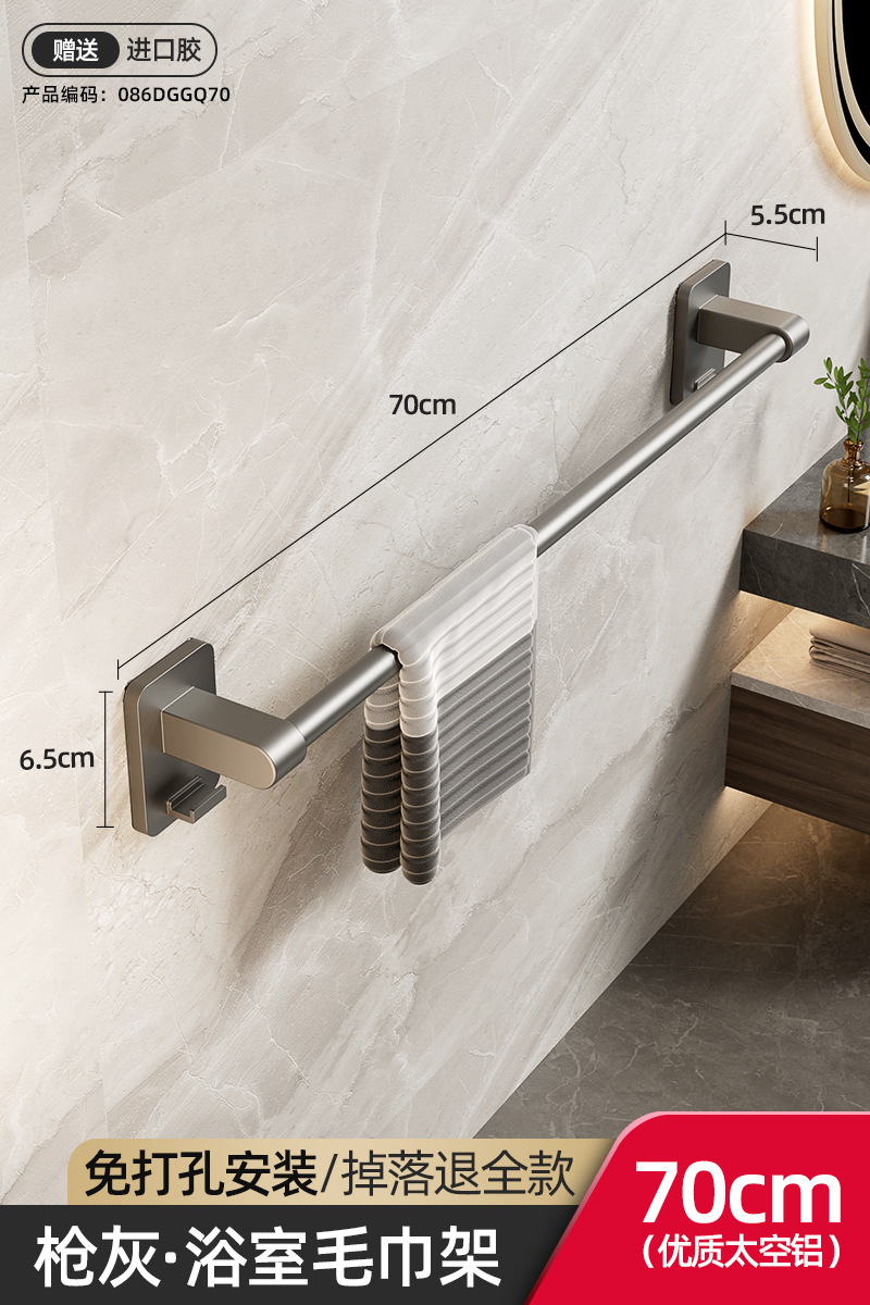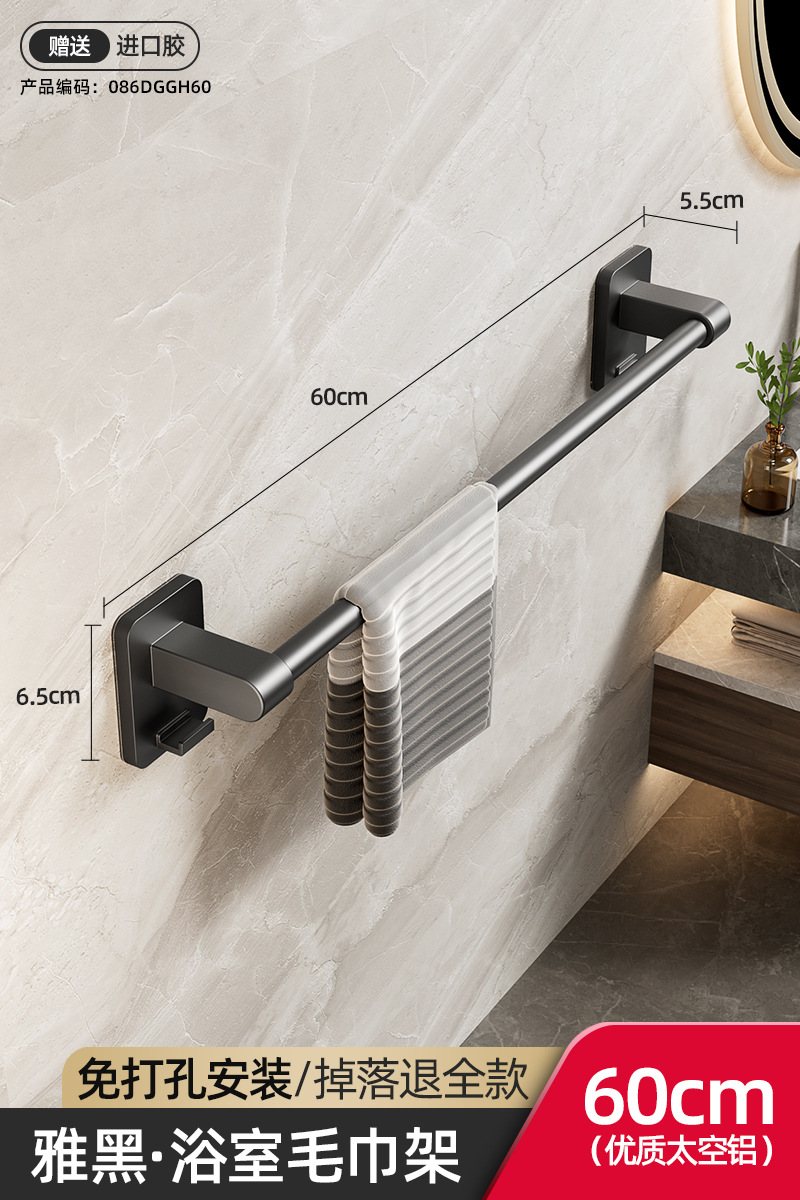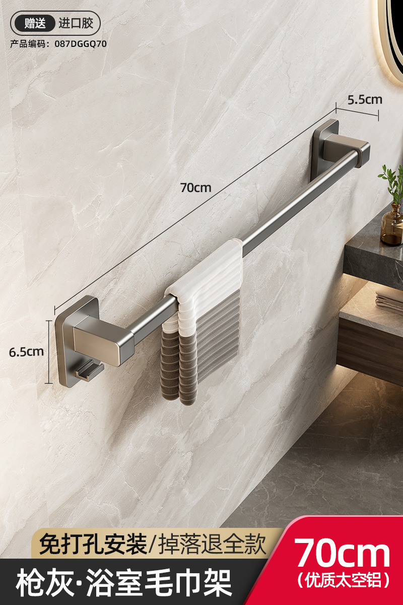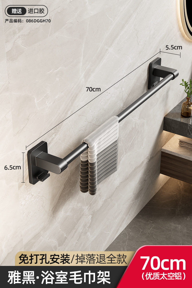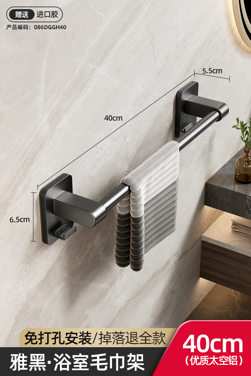 욕실 수건 선반, 욕실 펀치 없는 벽걸이 수납 선반, 수건 단일 막대 화장실 수납 선반
