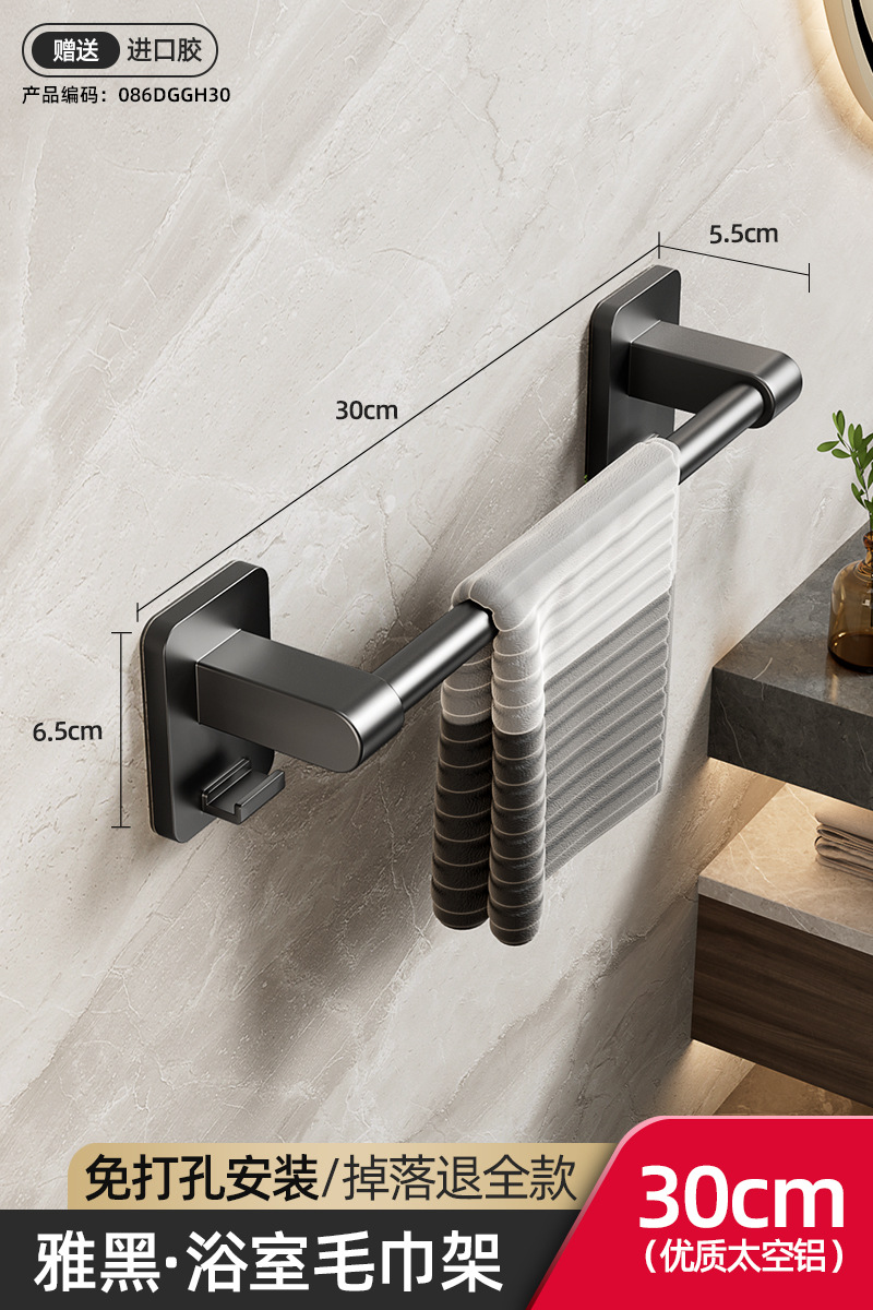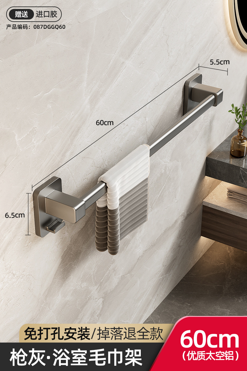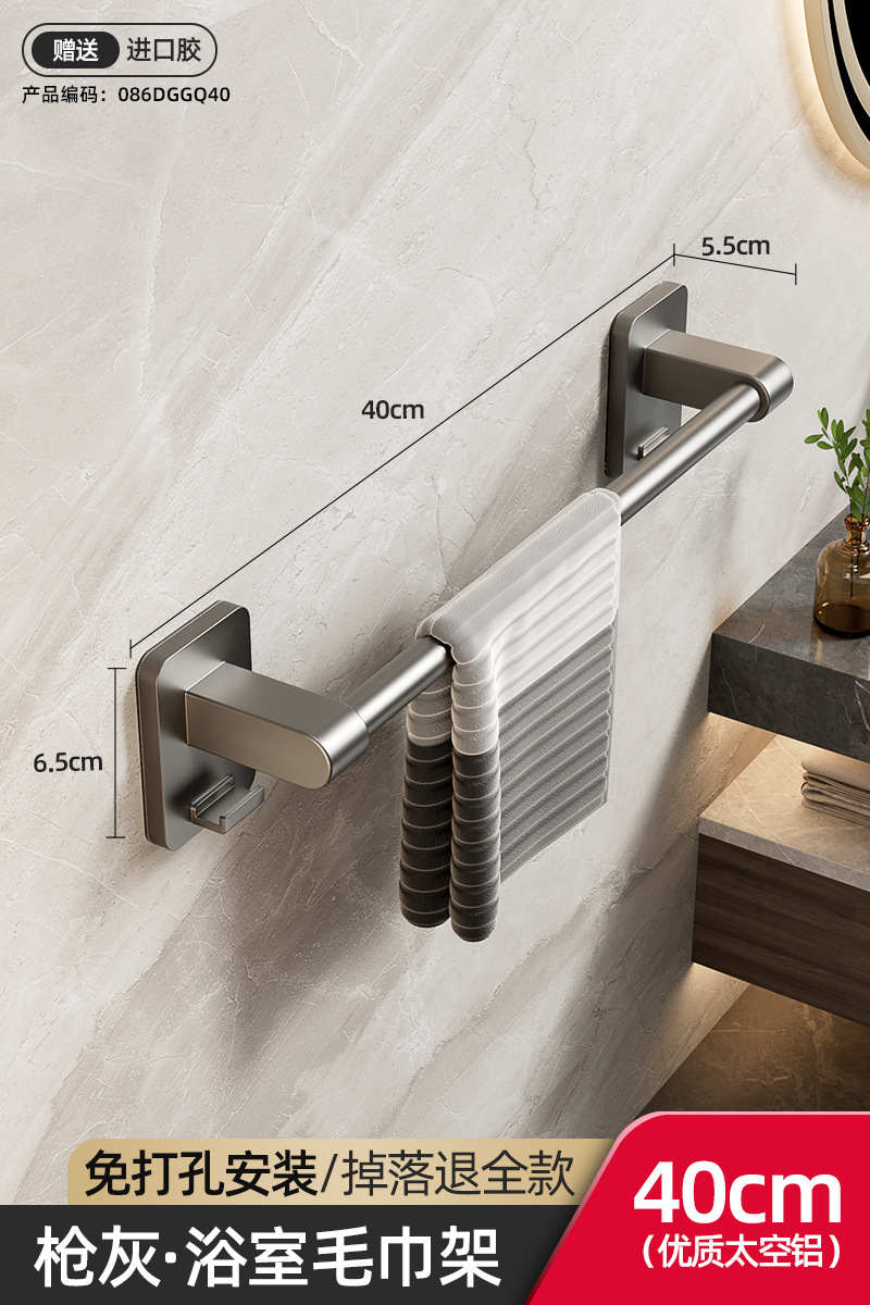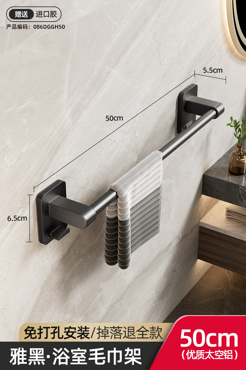 욕실 수건 선반, 욕실 펀치 없는 벽걸이 수납 선반, 수건 단일 막대 화장실 수납 선반