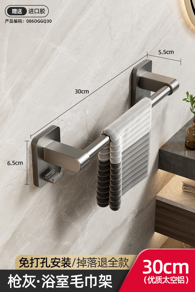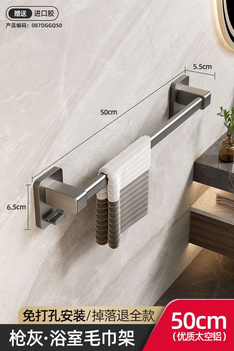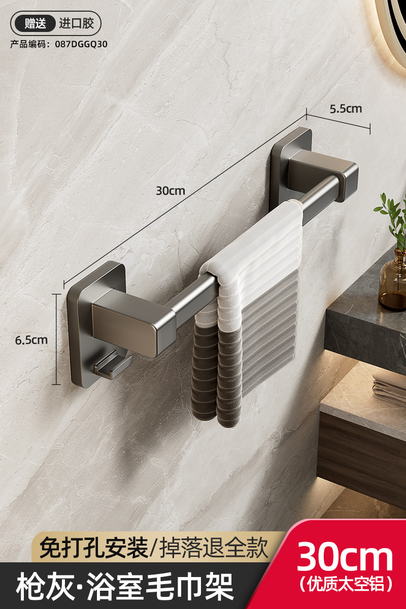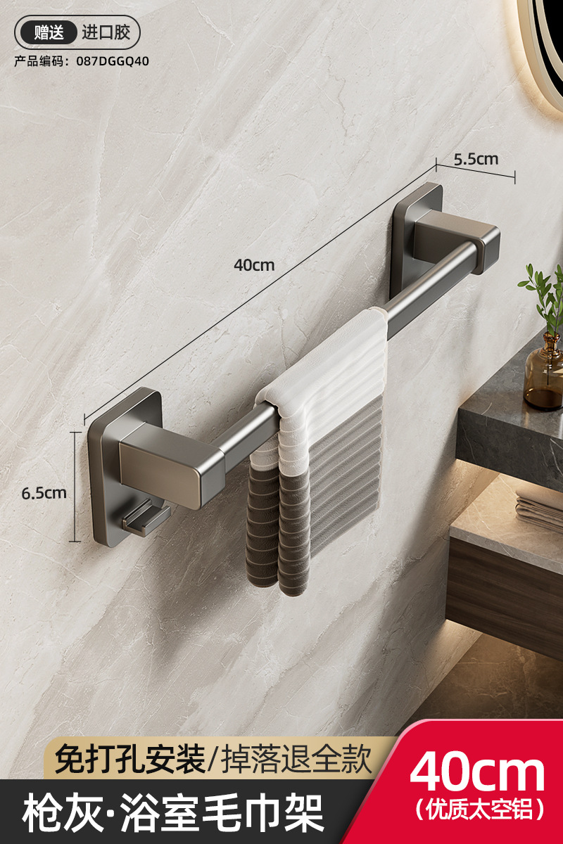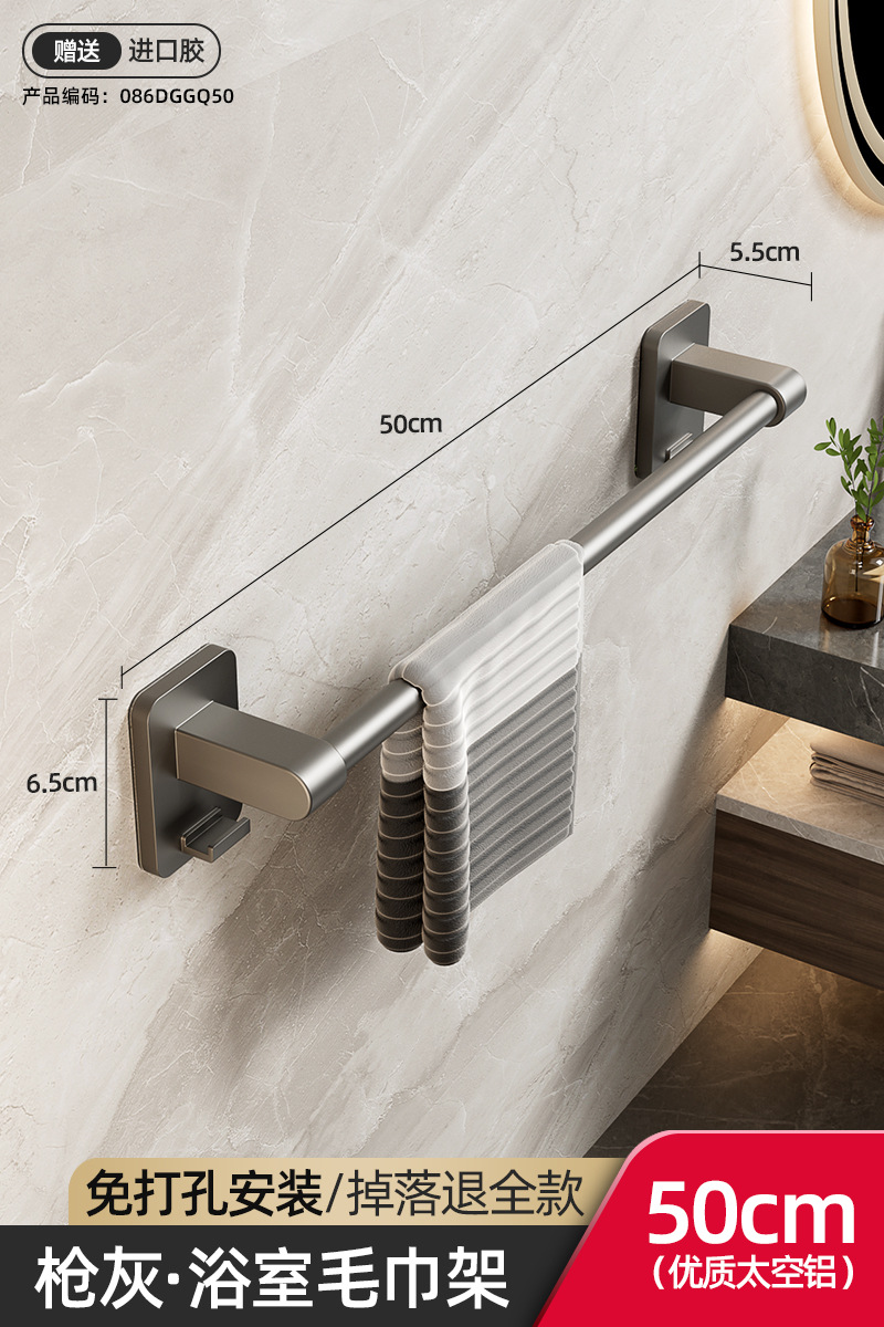 욕실 수건 선반, 욕실 펀치 없는 벽걸이 수납 선반, 수건 단일 막대 화장실 수납 선반