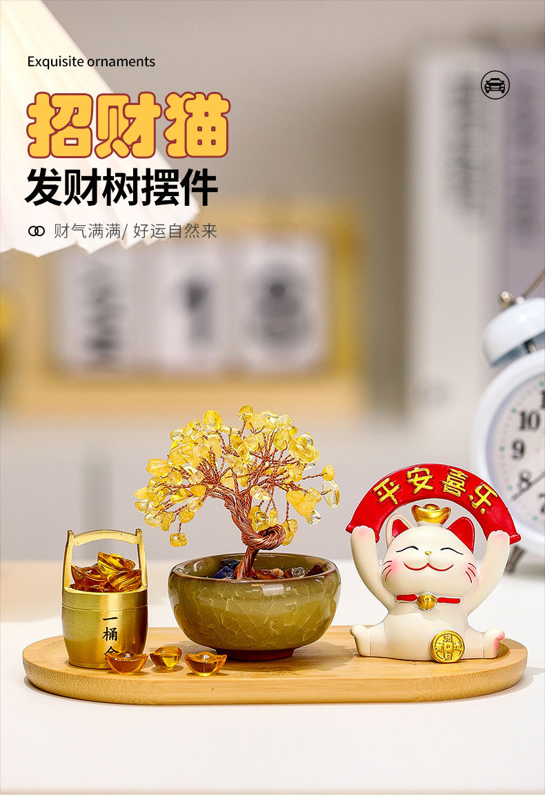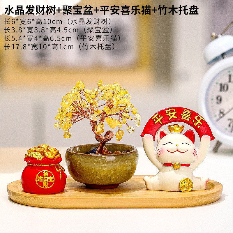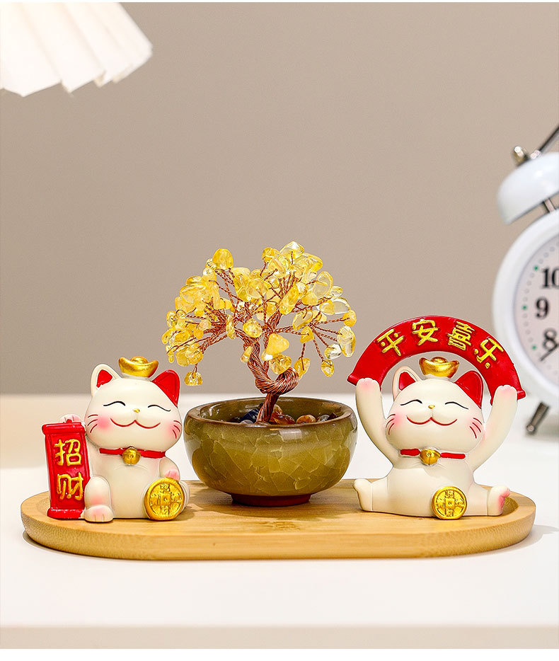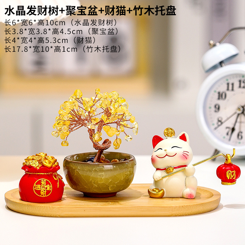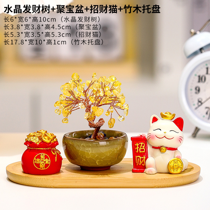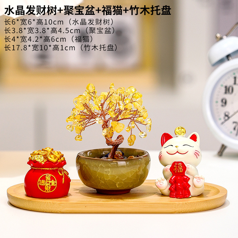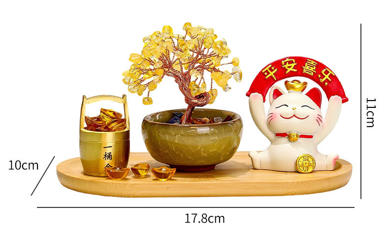 • 행운의 고양이 + 황수정 나무 + 금괴 + 대나무 쟁반