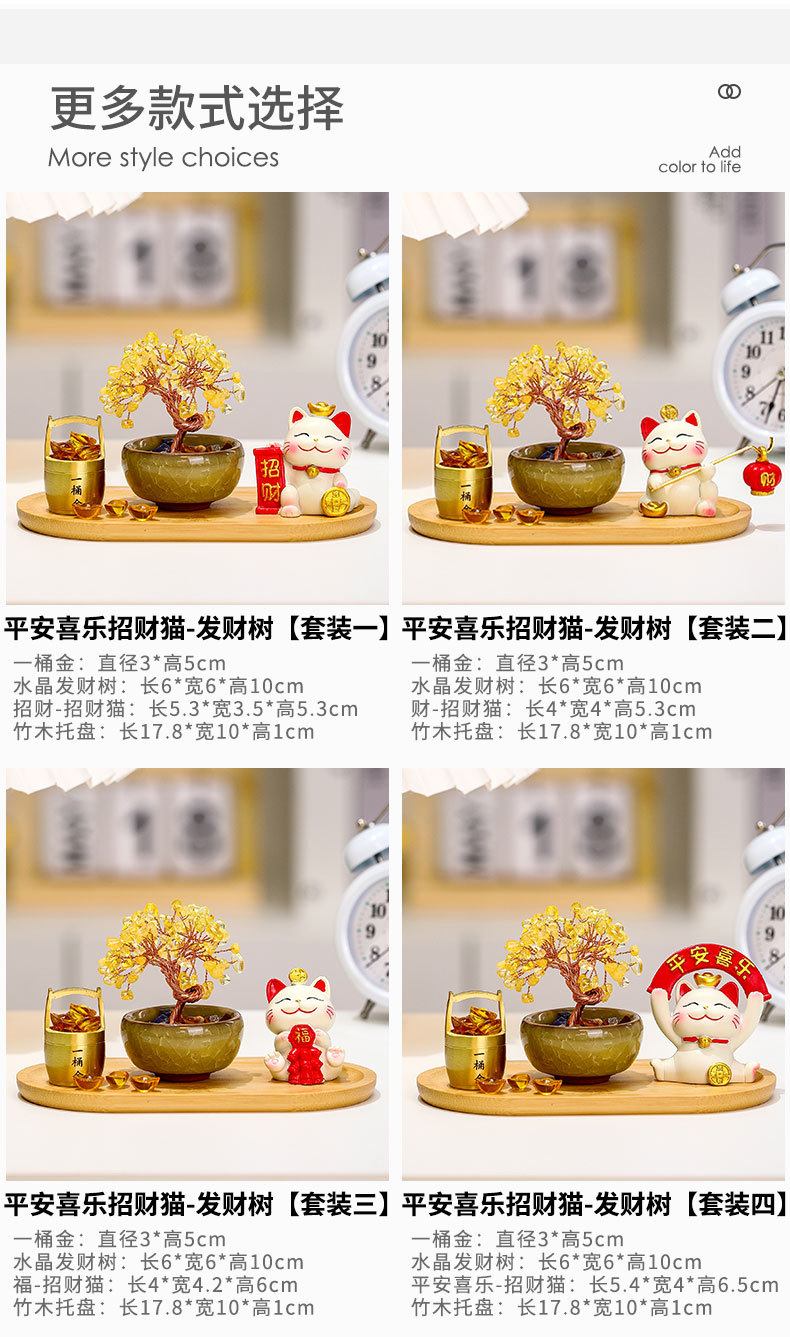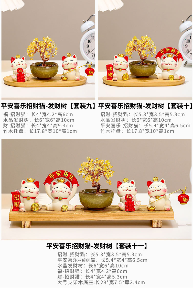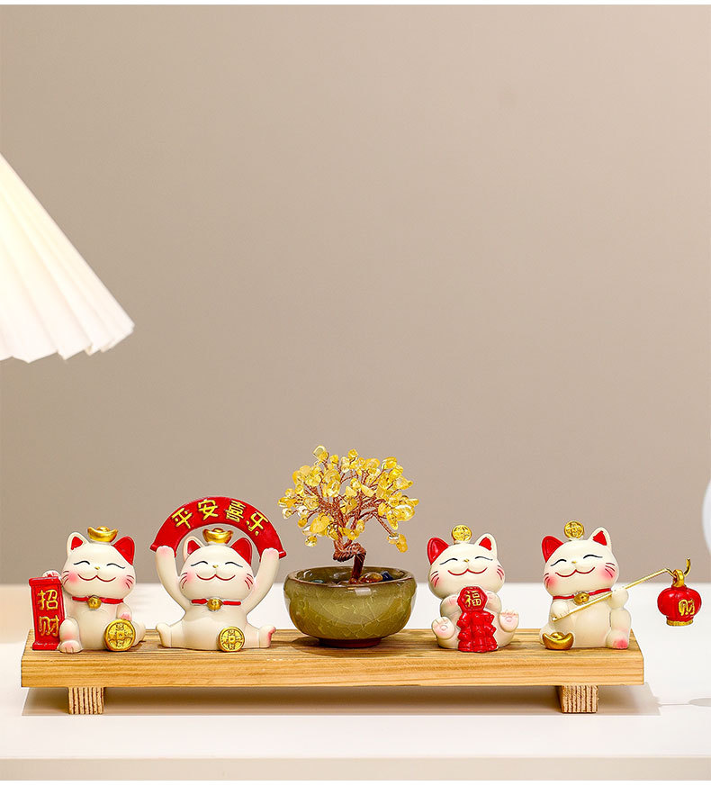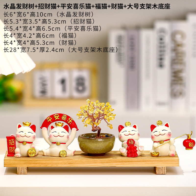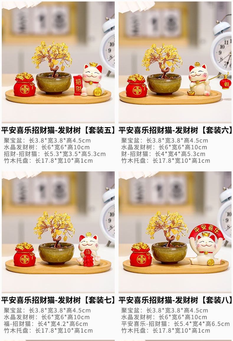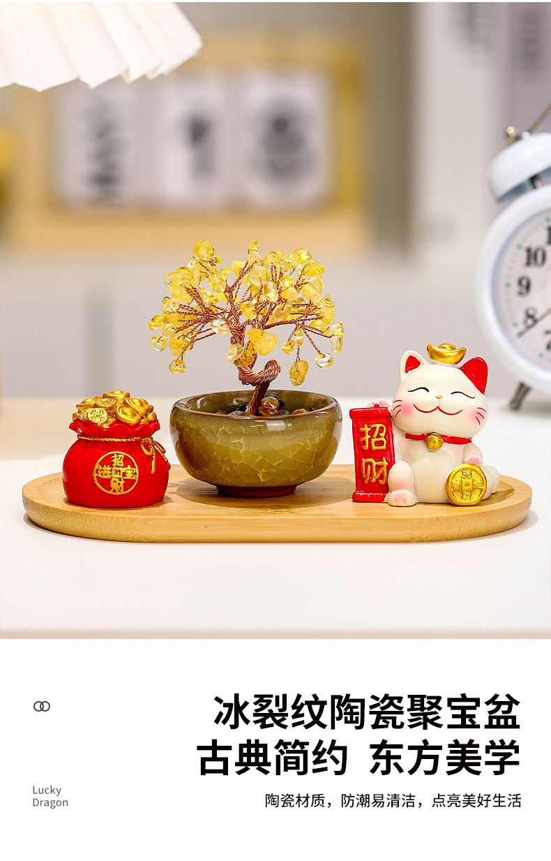 • 행운의 고양이 + 황수정 나무 + 금괴 + 대나무 쟁반