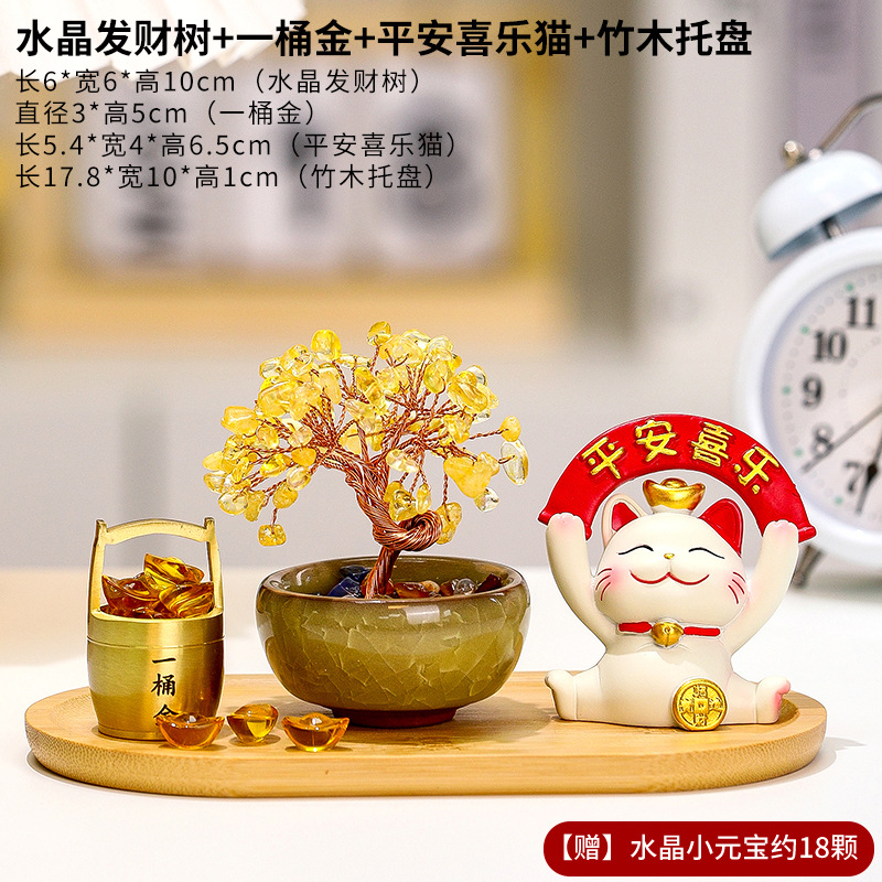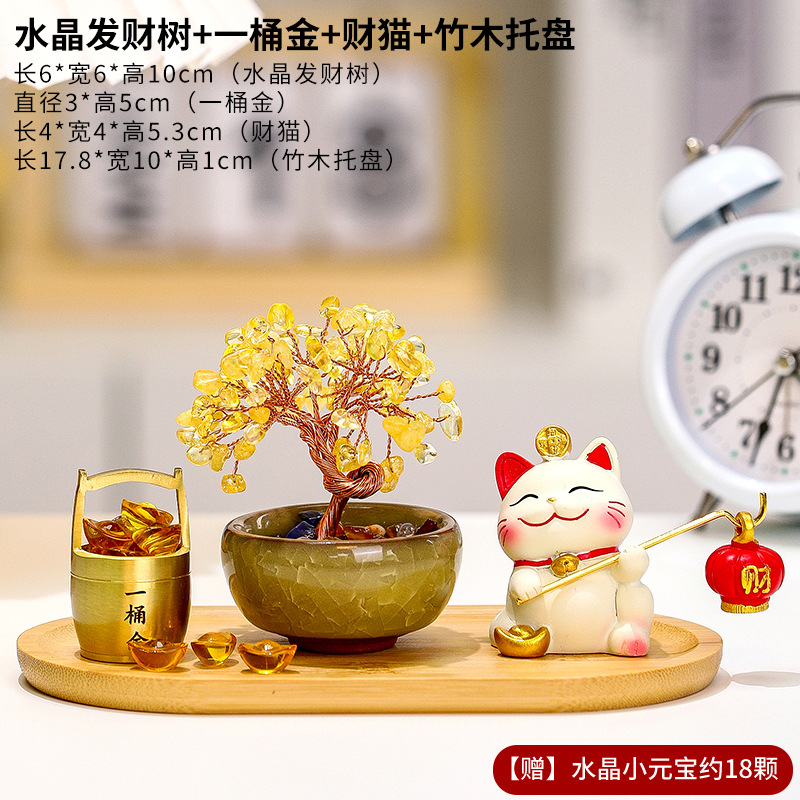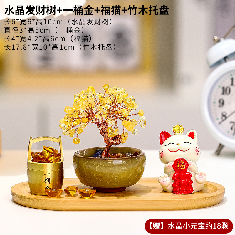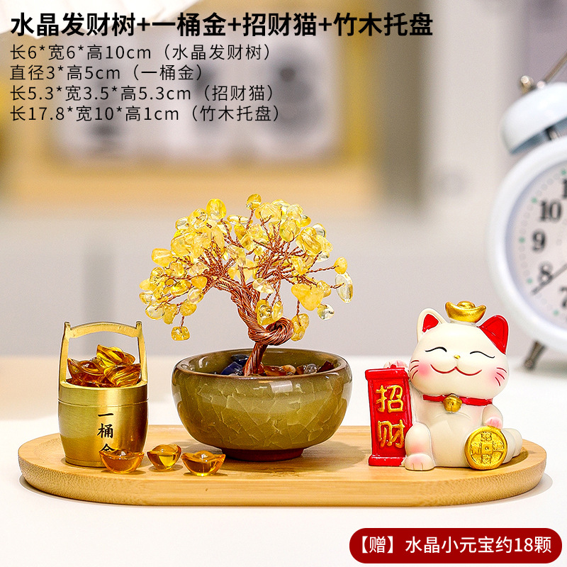 • 행운의 고양이 + 황수정 나무 + 금괴 한 통 + 대나무 쟁반