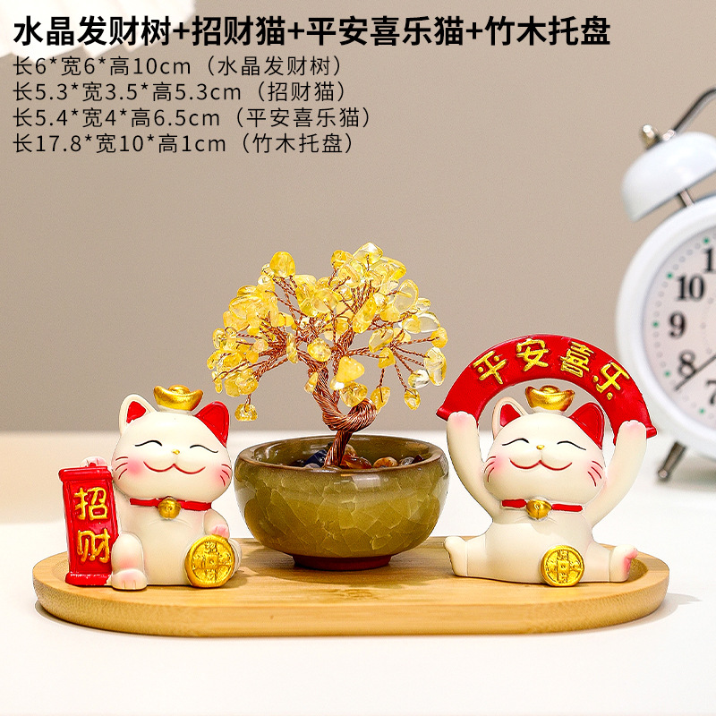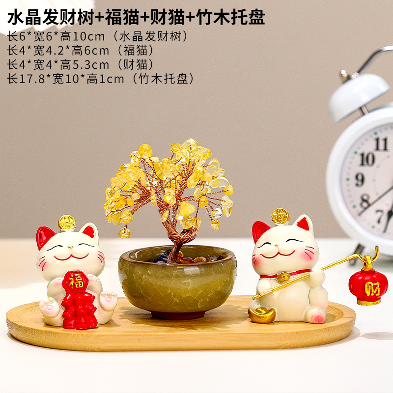 • 행운의 고양이 + 황수정 나무 + 복주머니 + 대나무 쟁반