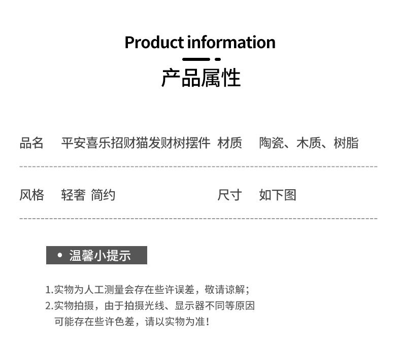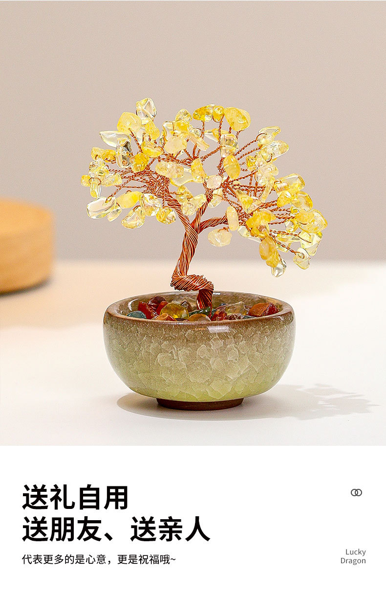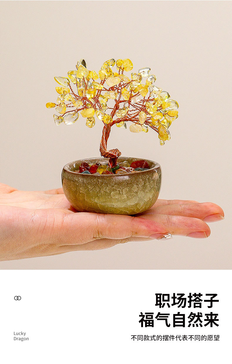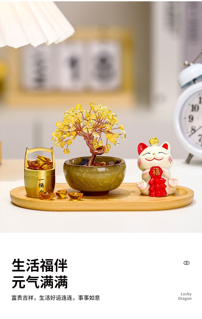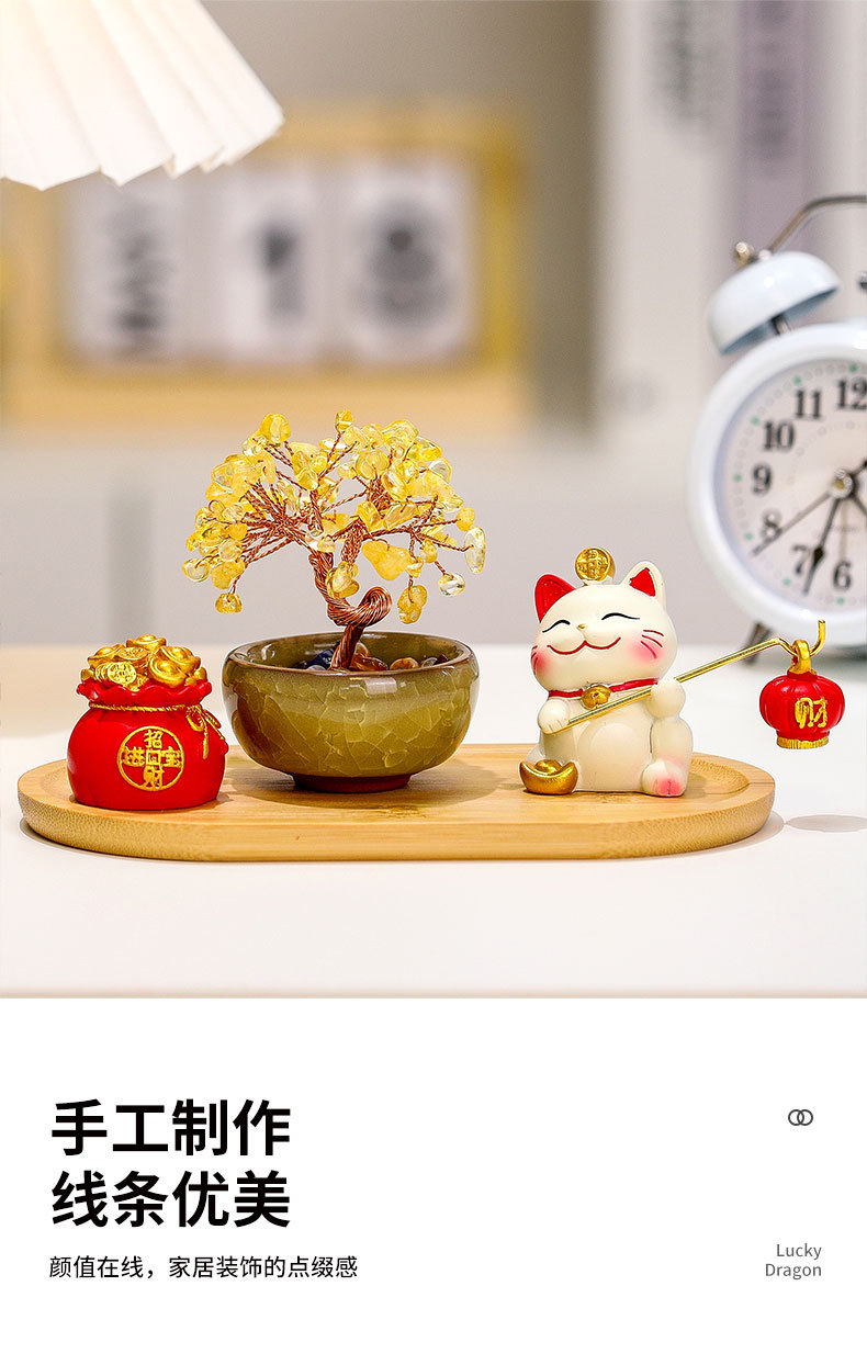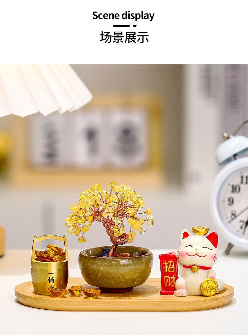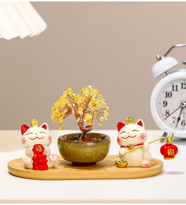 • 등불 행운의 고양이 + 황수정 나무 + 복주머니 + 대나무 쟁반