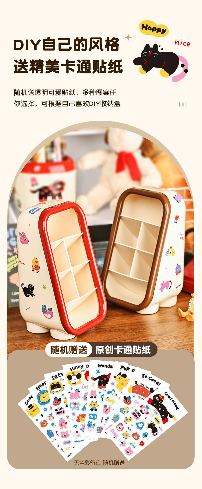 • 3303#6칸 대용량 수납함 - 브라운 + 스티커 1장